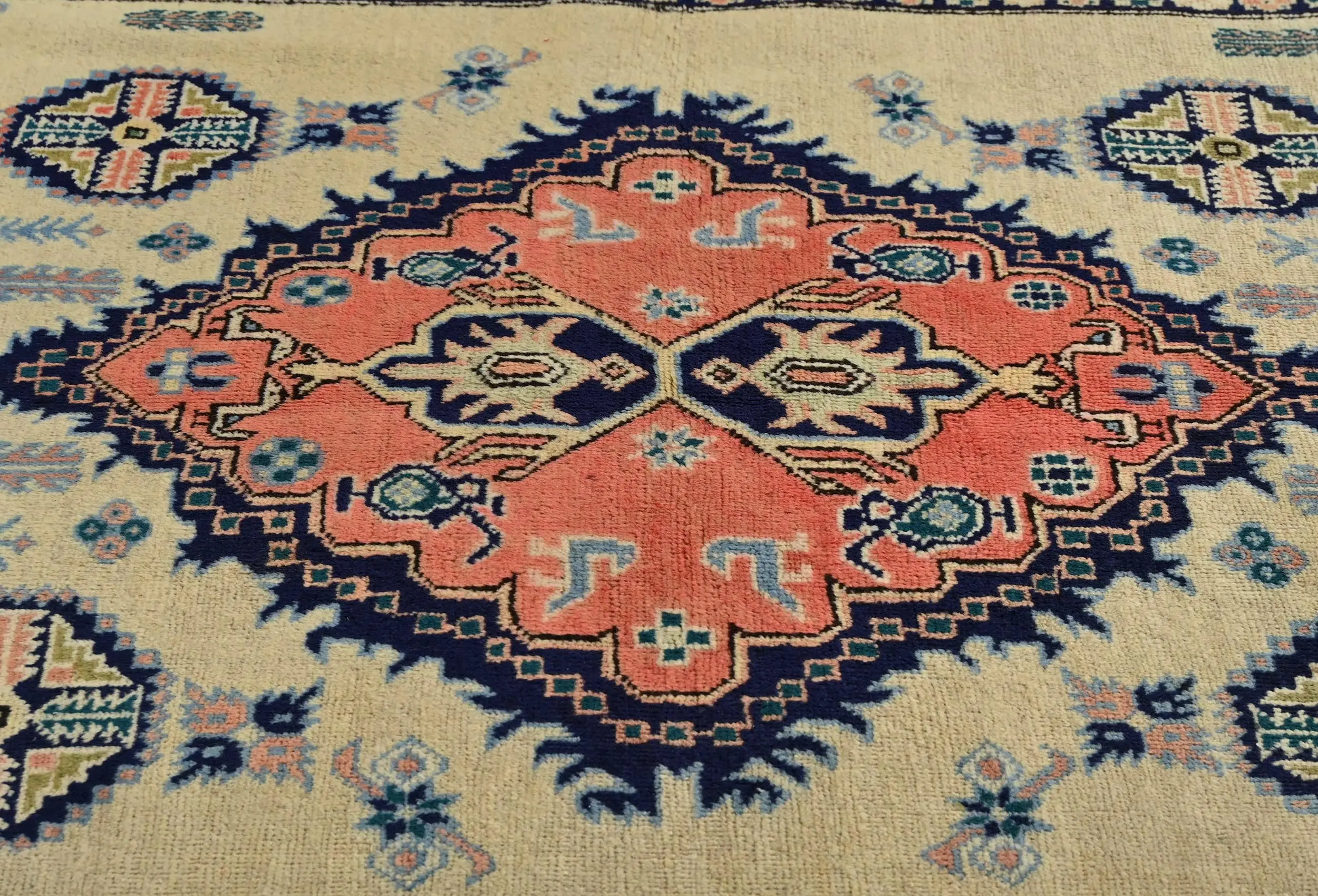 Handmade vintage 4X6 cream Persian rug made with vegetable dyes (fine wool pile and cotton foundation), superior knot count, and alluring ancient designs. This Oriental rug never will go out of style and would be among your most valuable treasures.