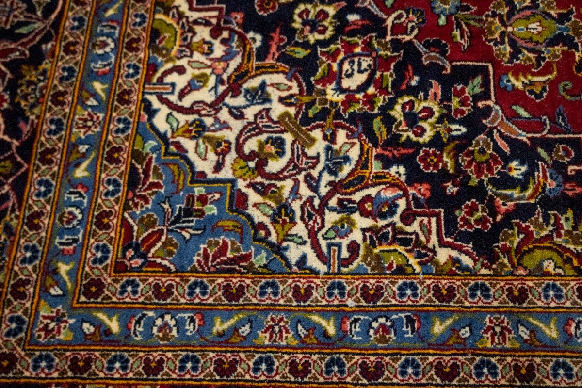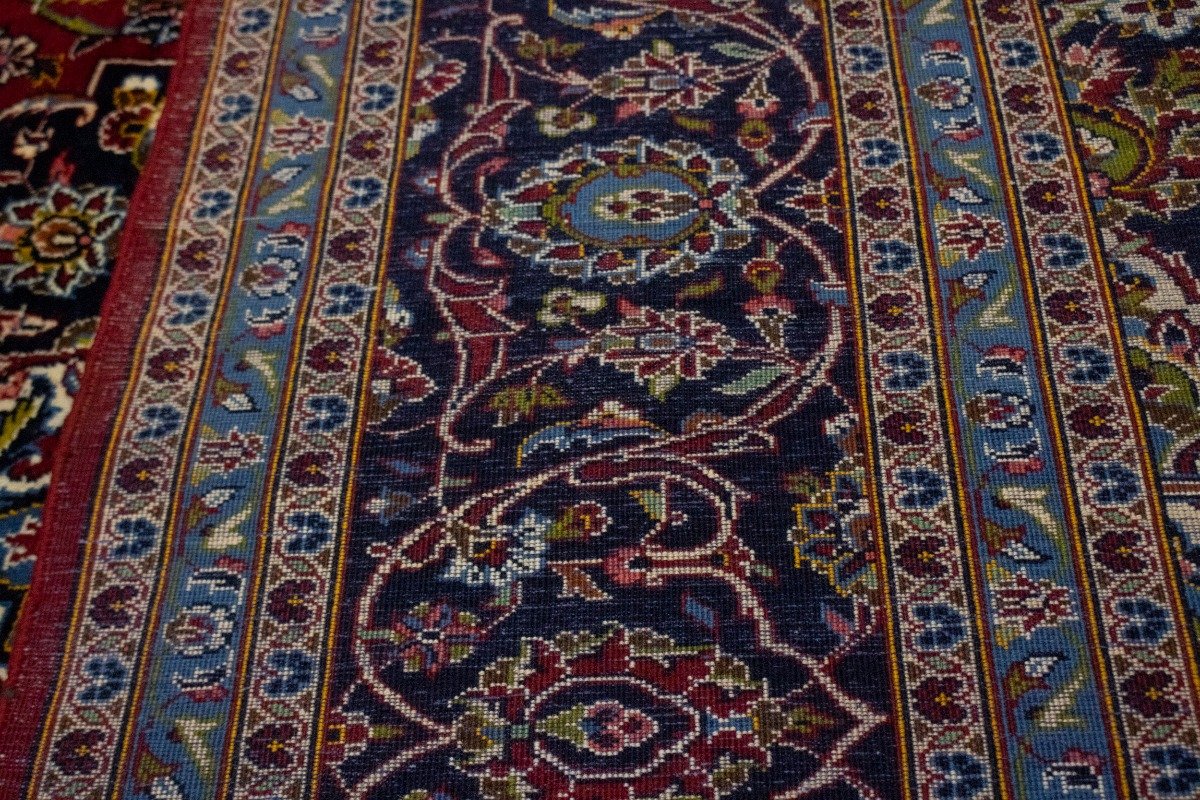 Handmade vintage Persian rug made with vegetable dyes (fine wool pile and cotton foundation), superior knot count, and appealing ancient designs. This Oriental rug never will go out of style and would be among your most valuable treasures.