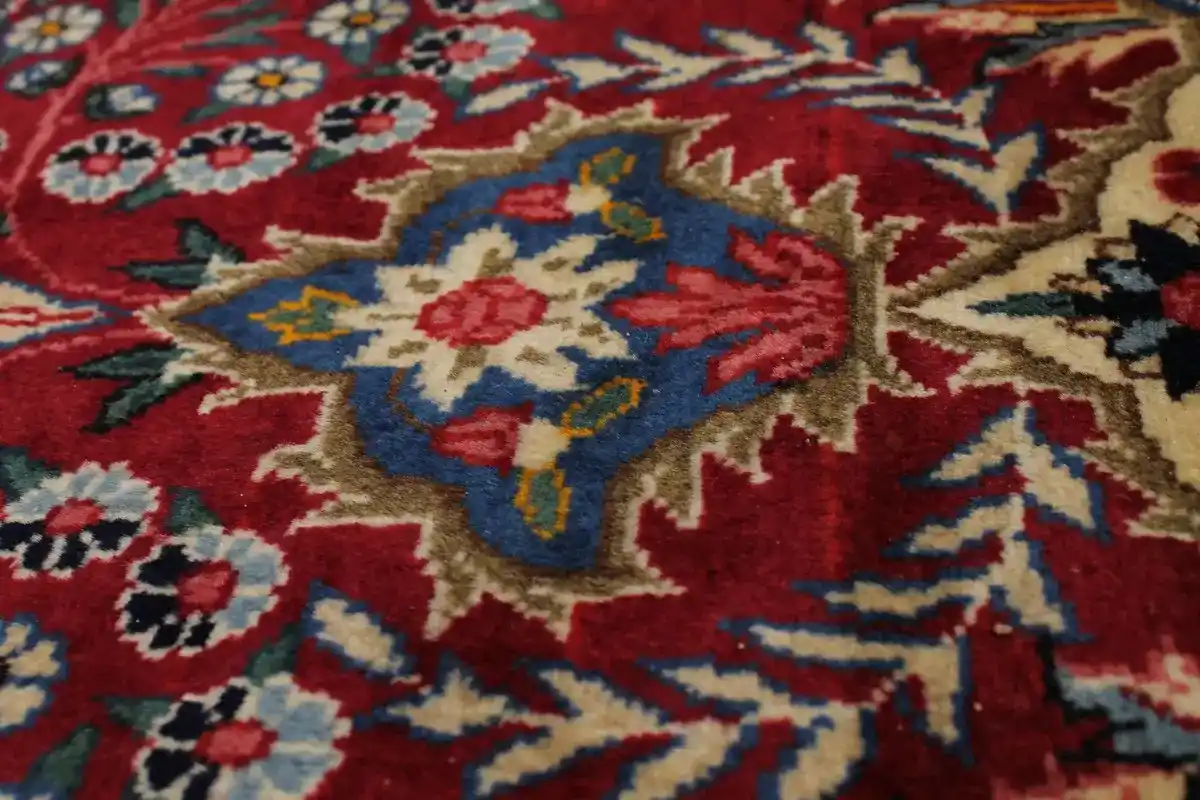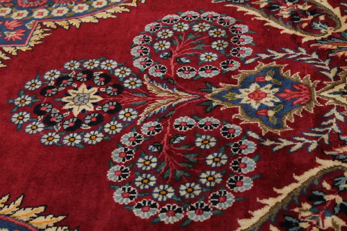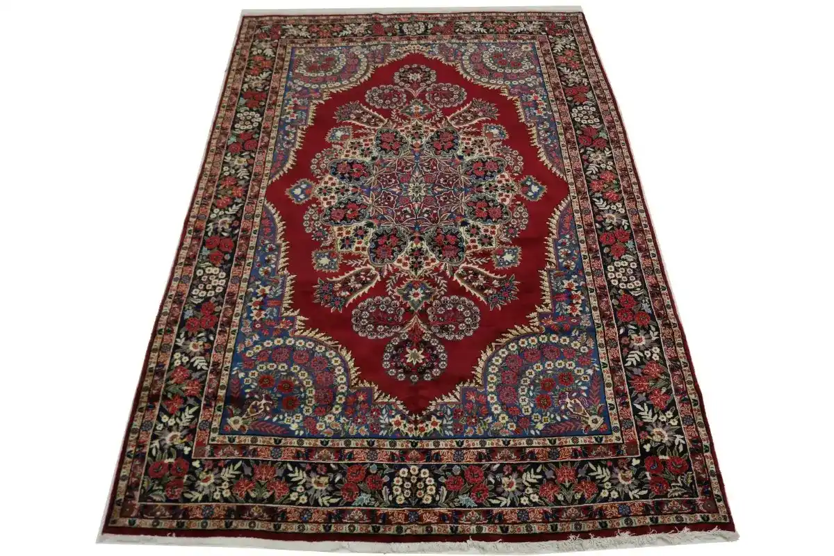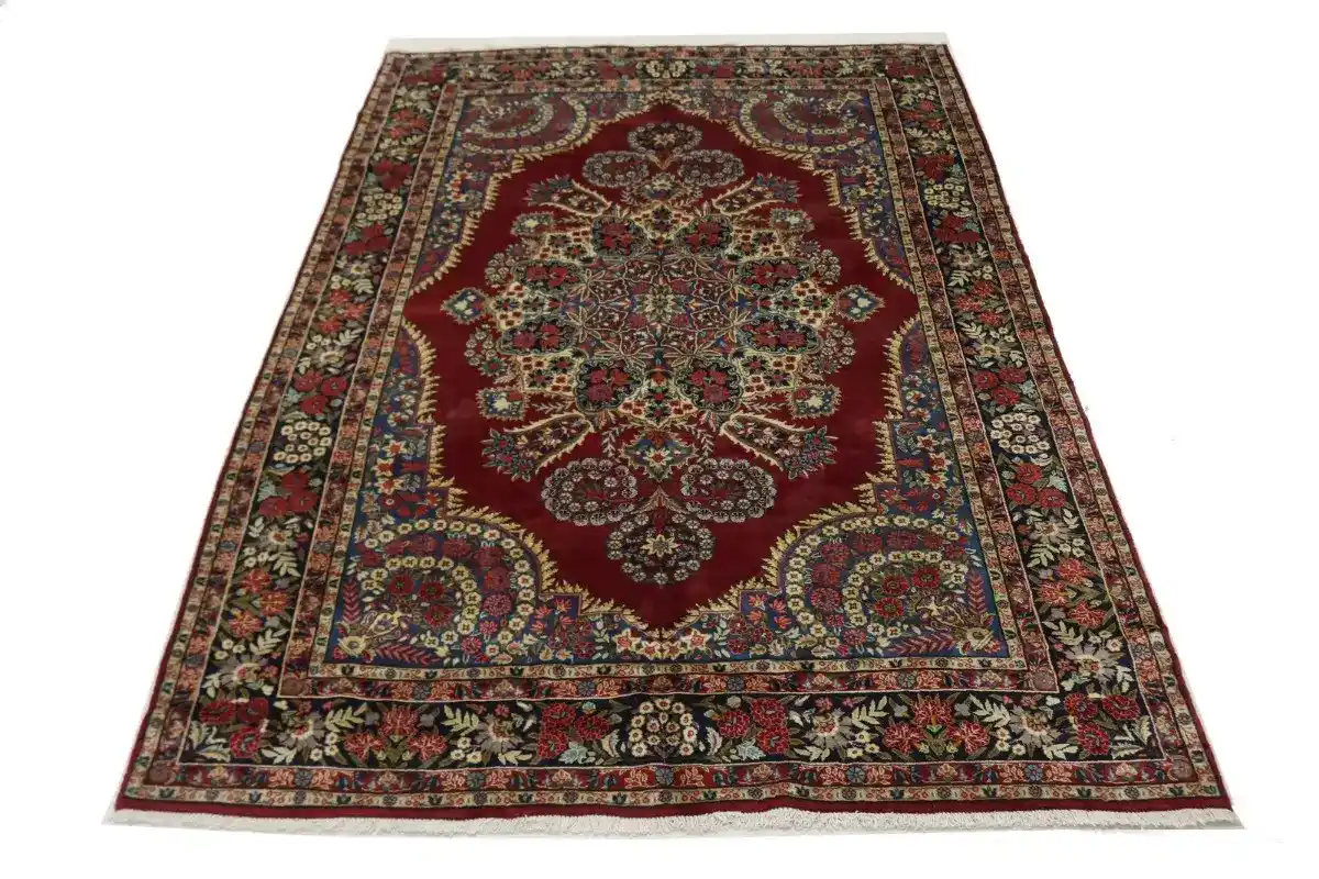Vintage Red Traditional 6'5X10'5 Qom Kerman Persian Rug