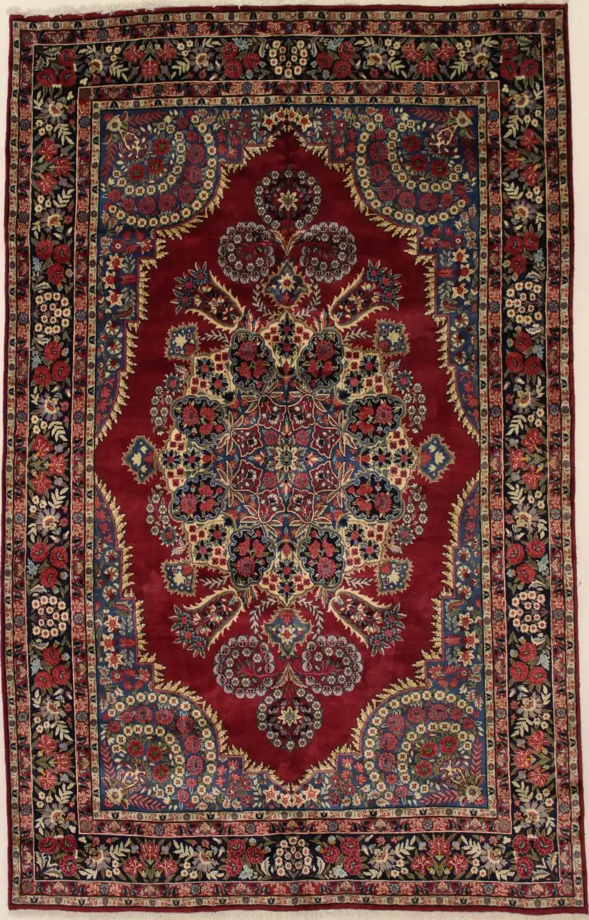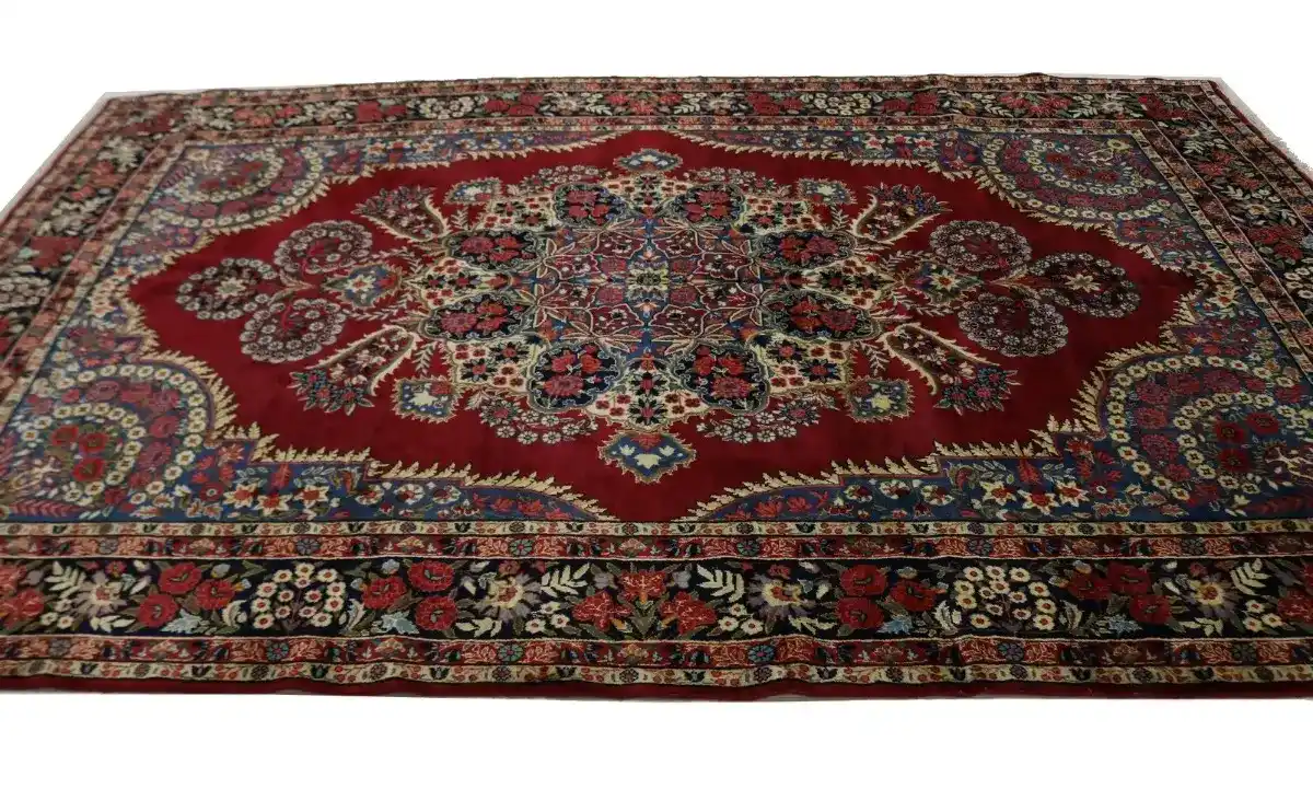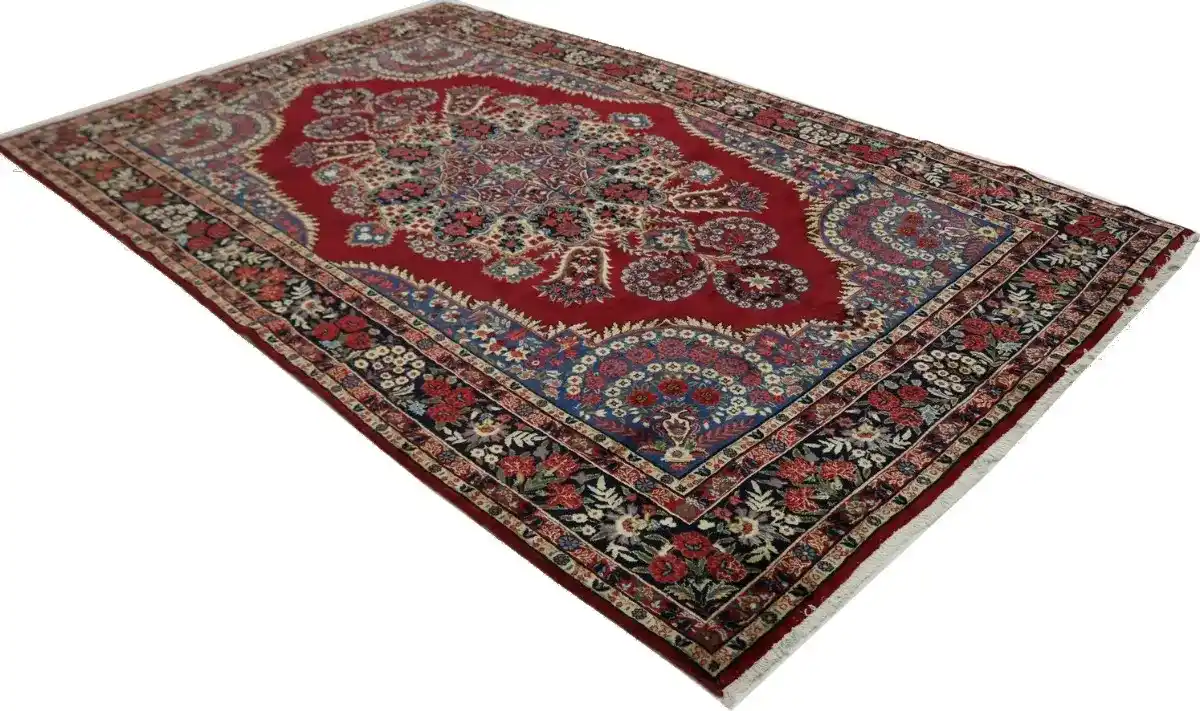 Vintage Red Traditional 6'5X10'5 Qom Kerman Persian Rug