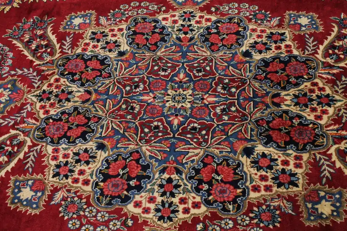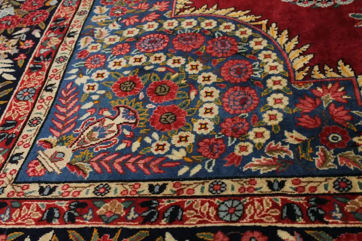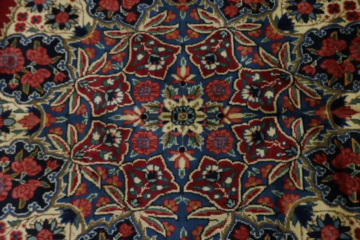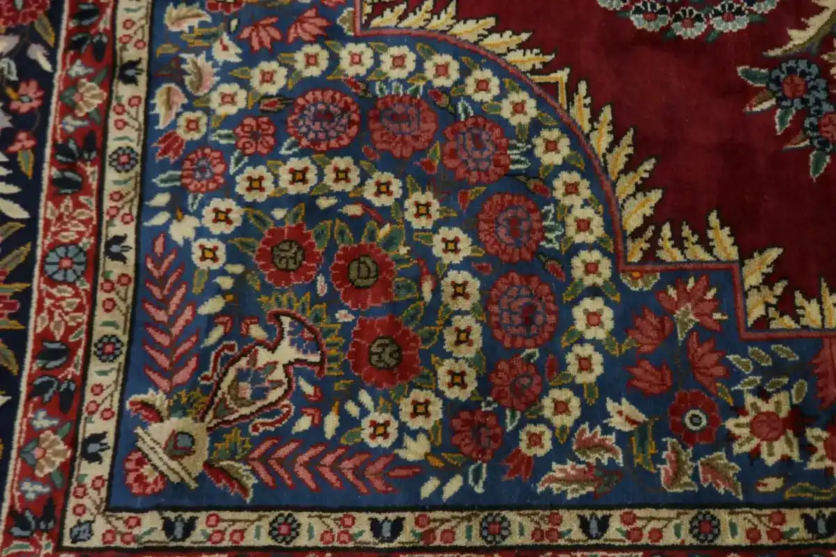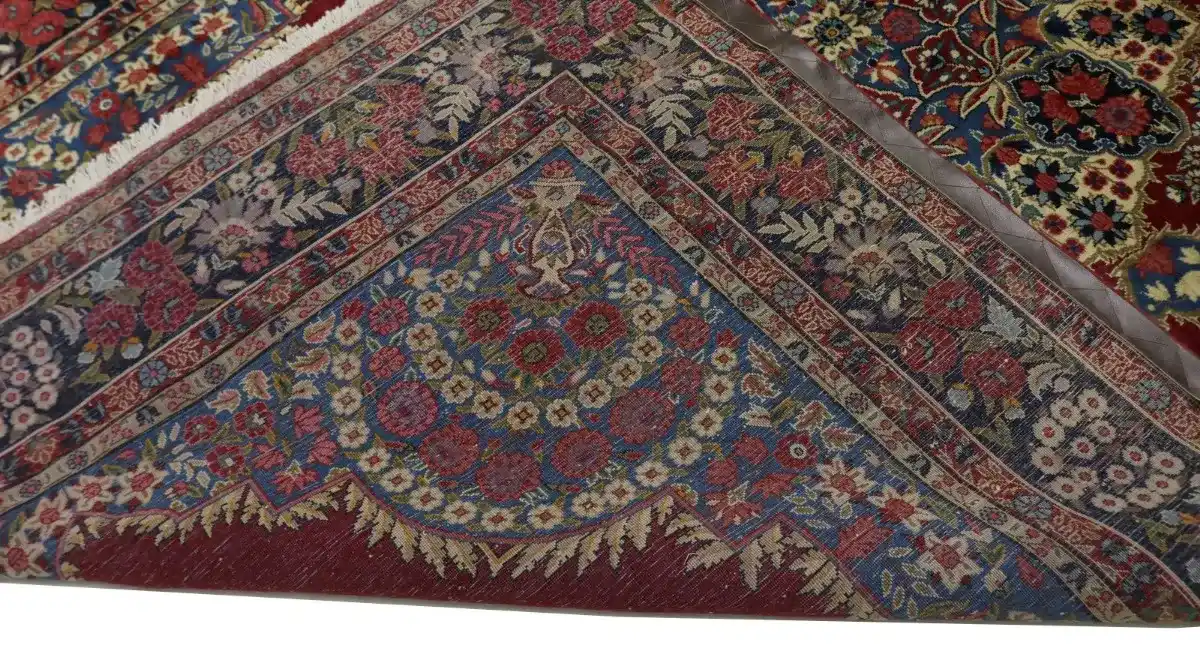 Handmade Persian rug made with vegetable dyes (fine wool pile and cotton foundation), exceptional knot count, and alluring ancient designs. This Oriental rug never will go out of style and would be among your most valuable treasures.