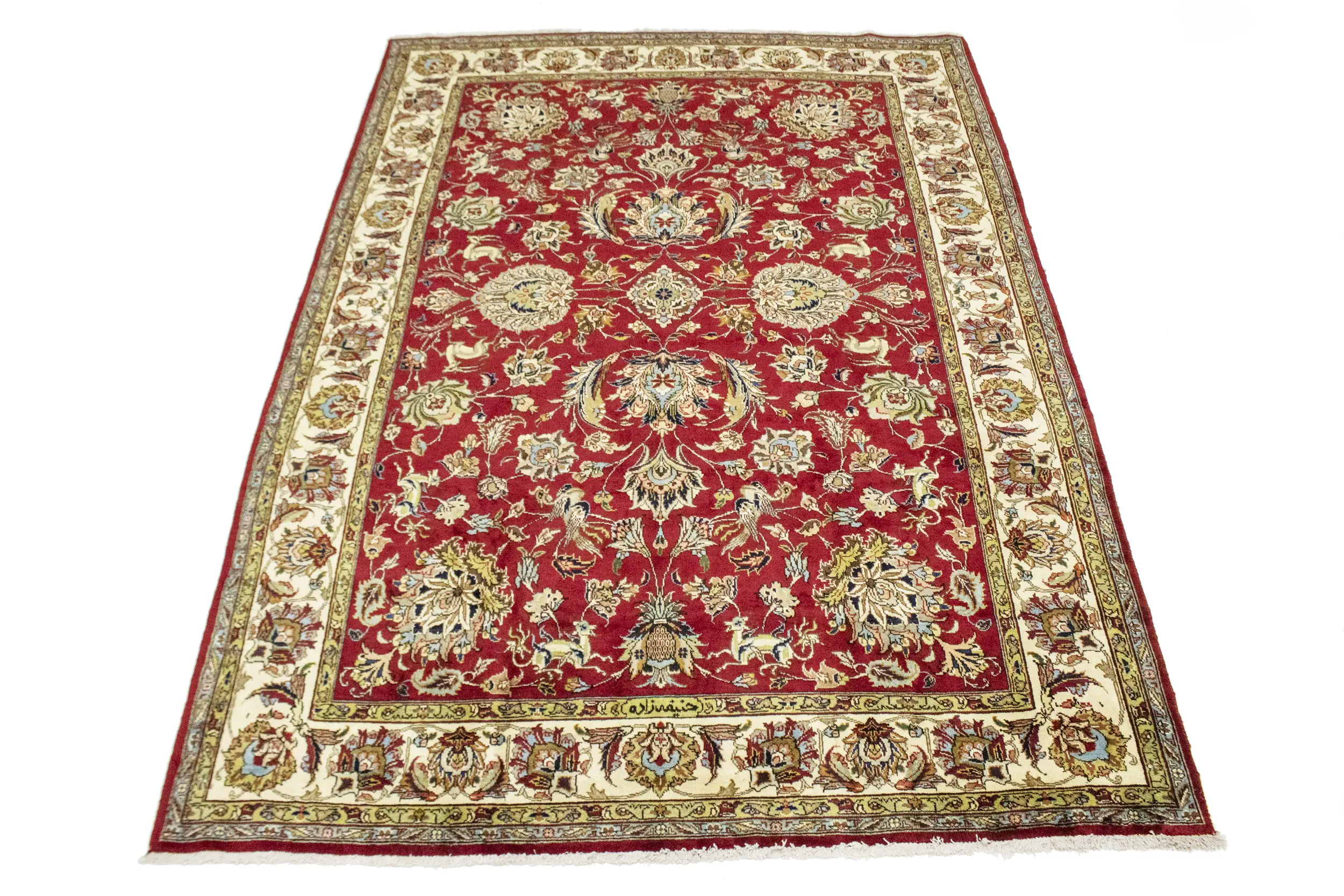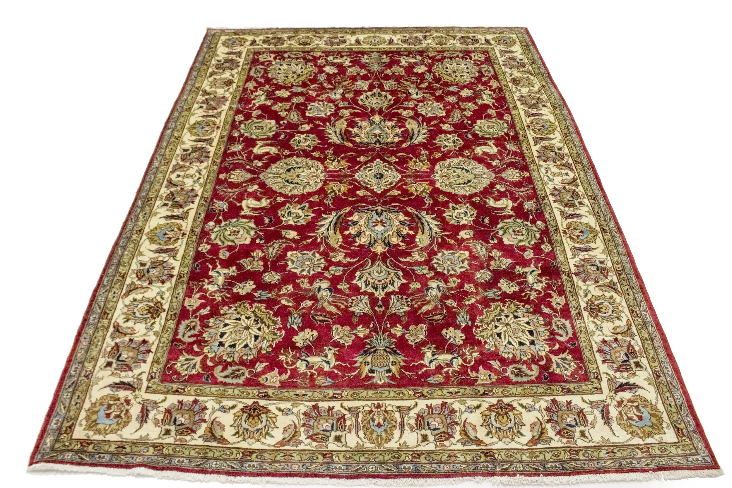 Vintage Red Traditional 8X12 Tabriz Persian Rug