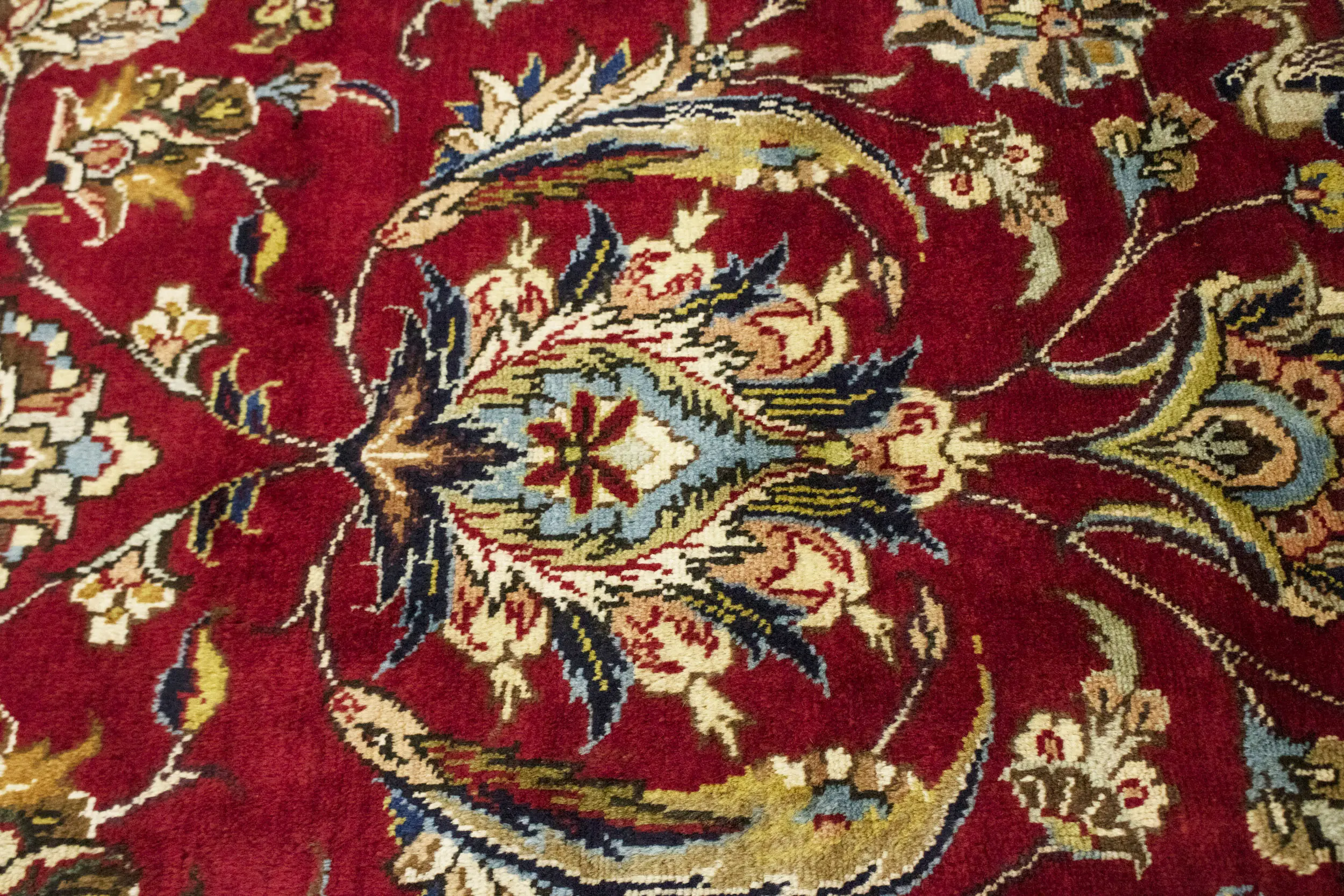Handmade vintage 8X12 red Persian rug made with natural dyes (fine wool pile and cotton foundation), superior knot count, and appealing ancient designs. This Oriental rug never will go out of style and would be among your most valuable treasures.