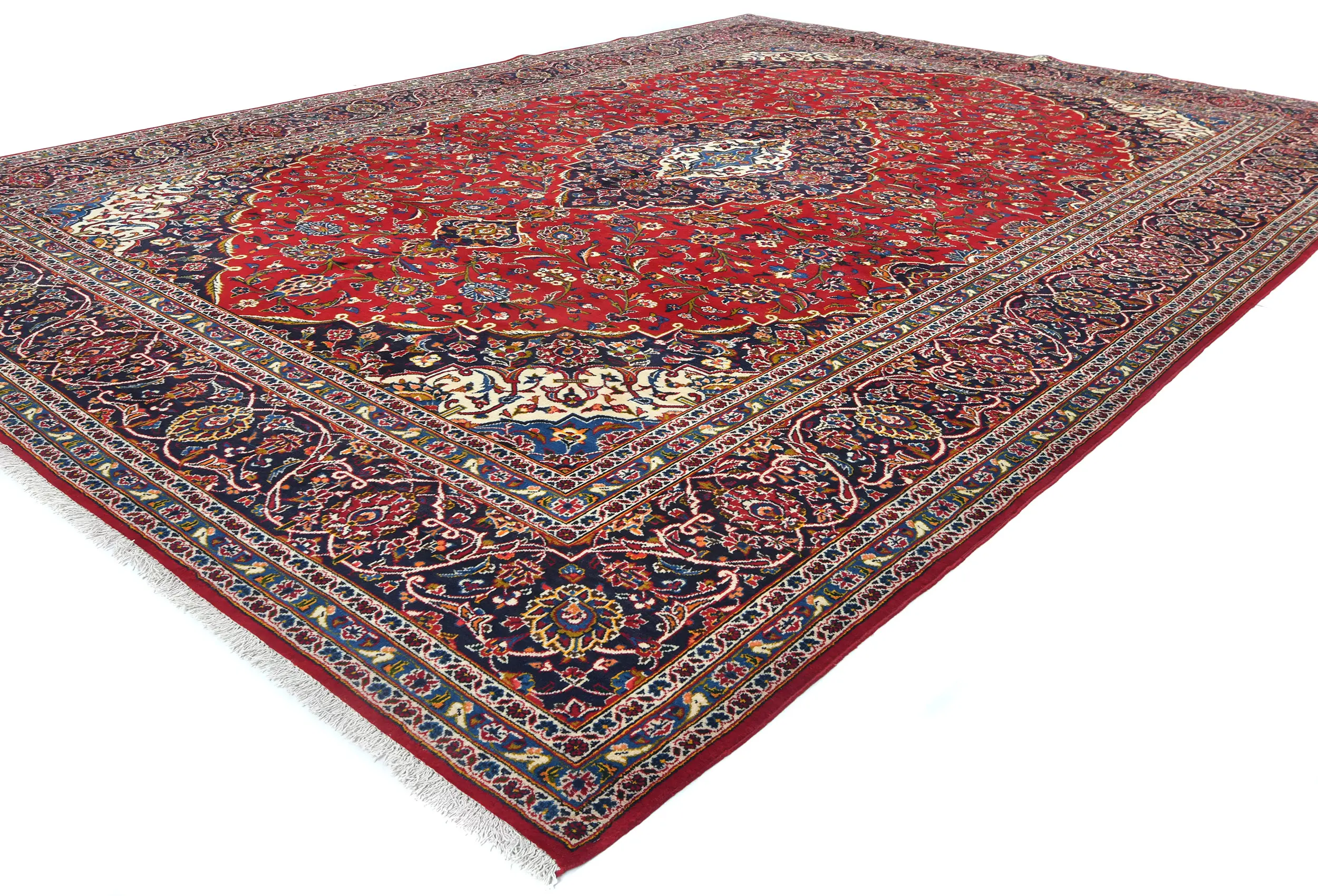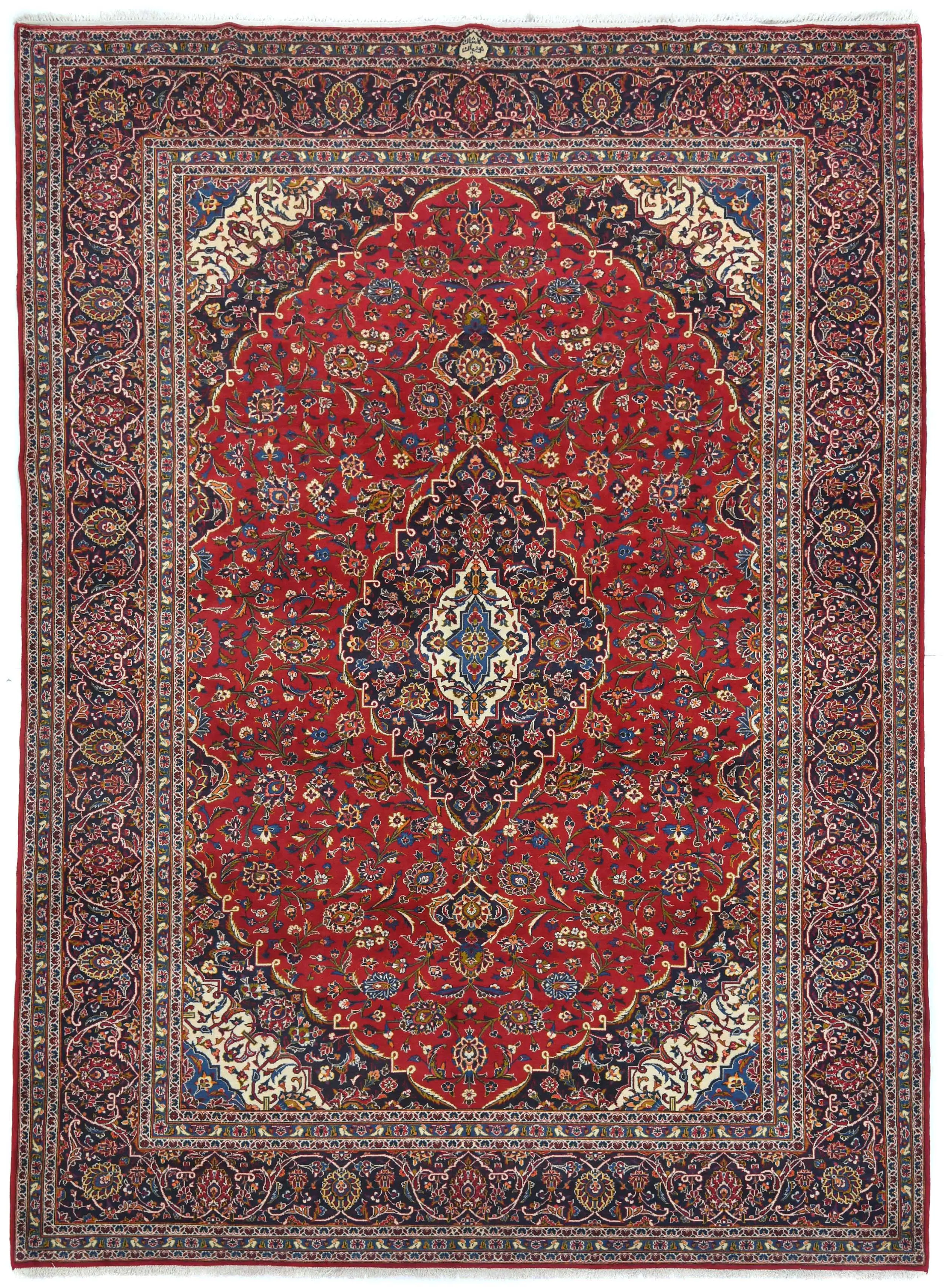 Vintage Red Traditional Floral 9'7X13'6 Kashan Persian Rug
