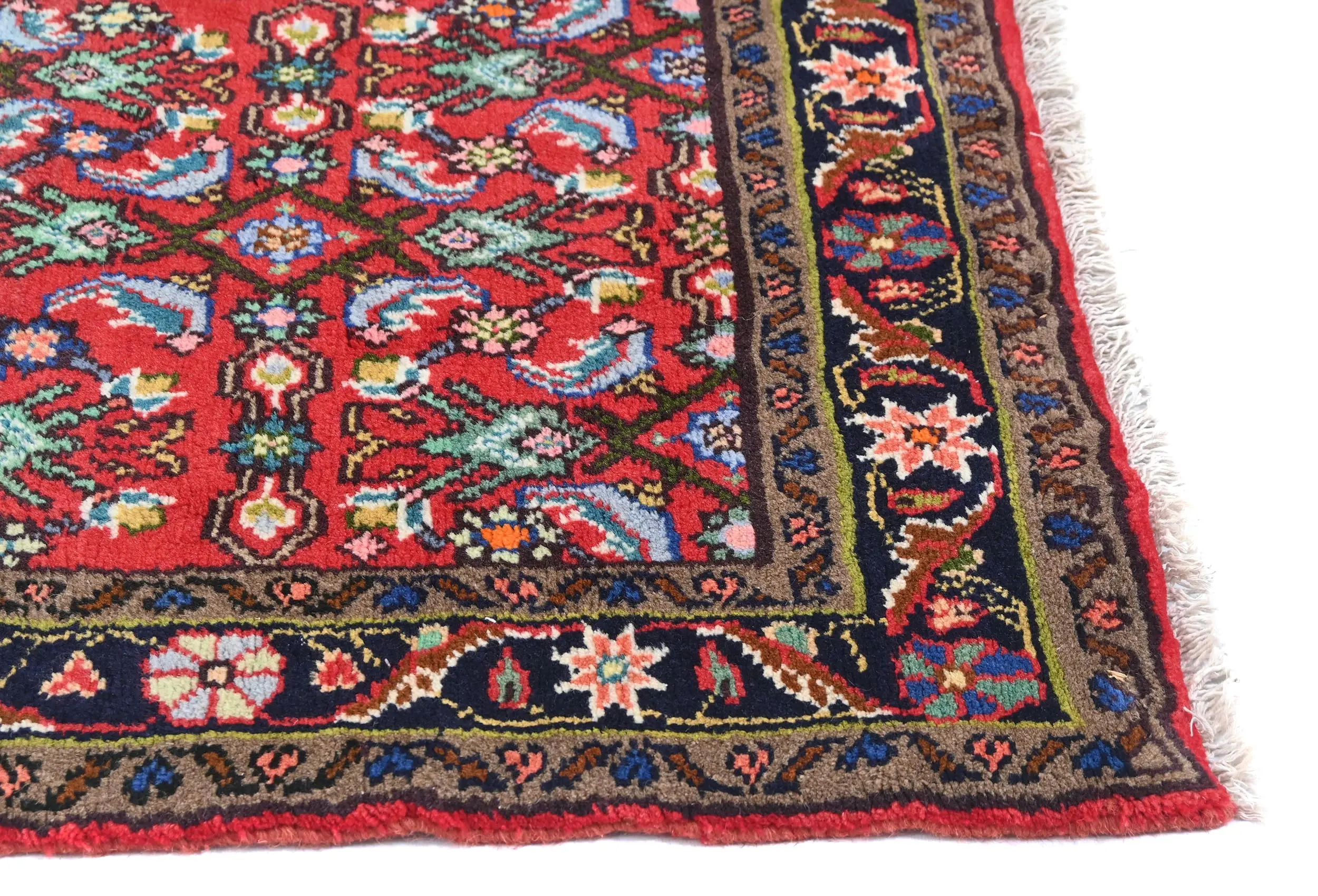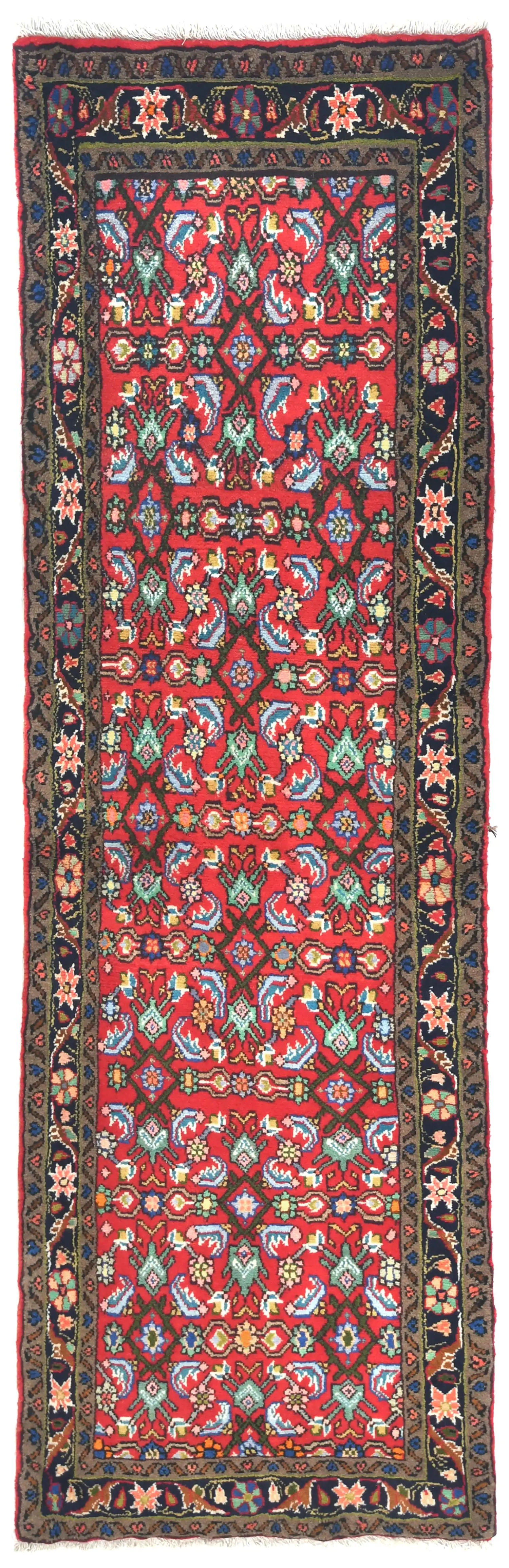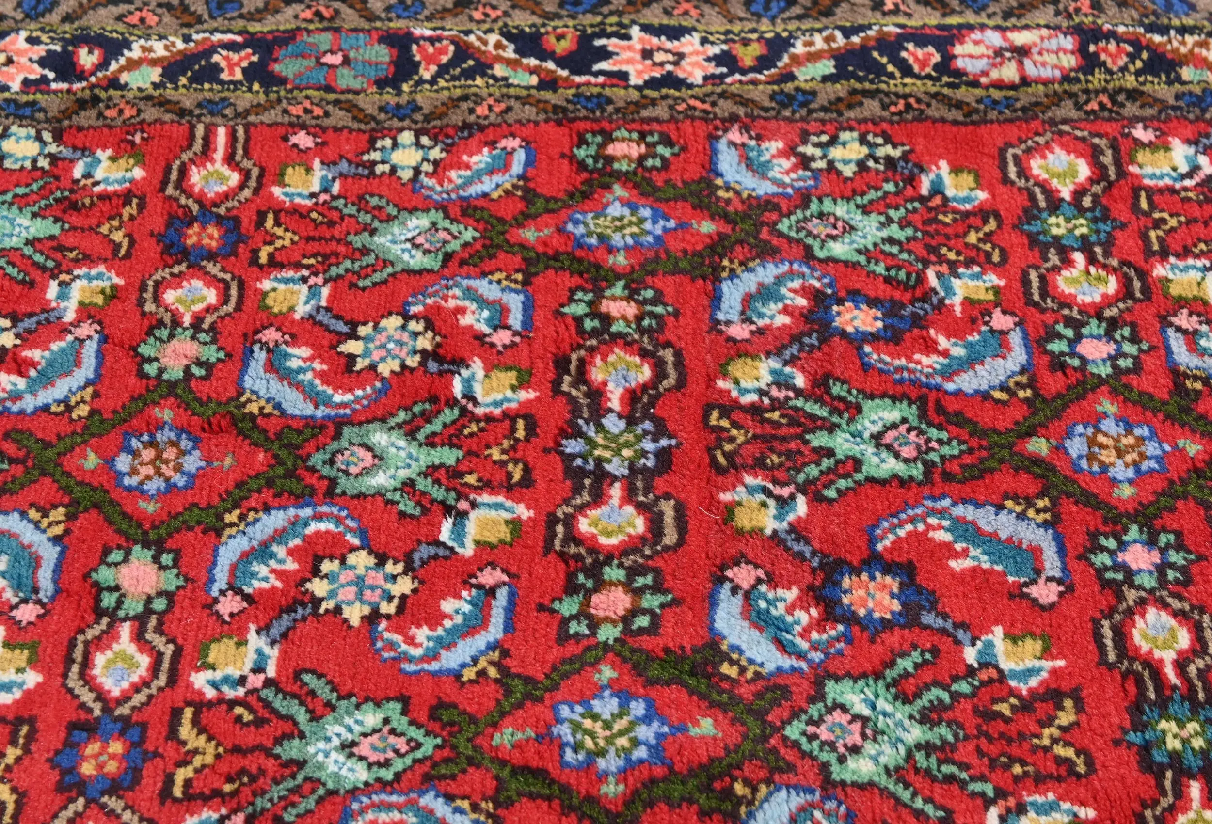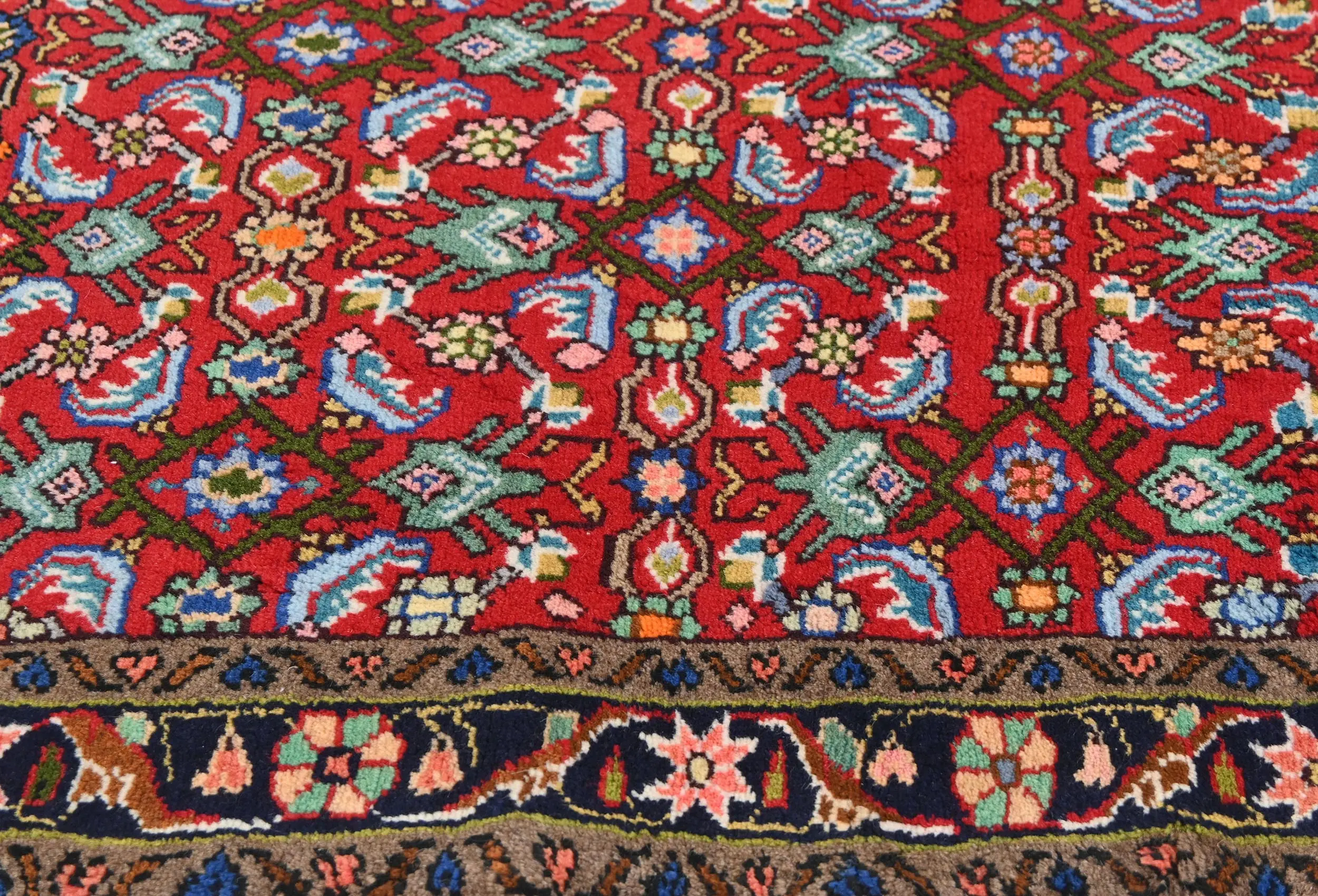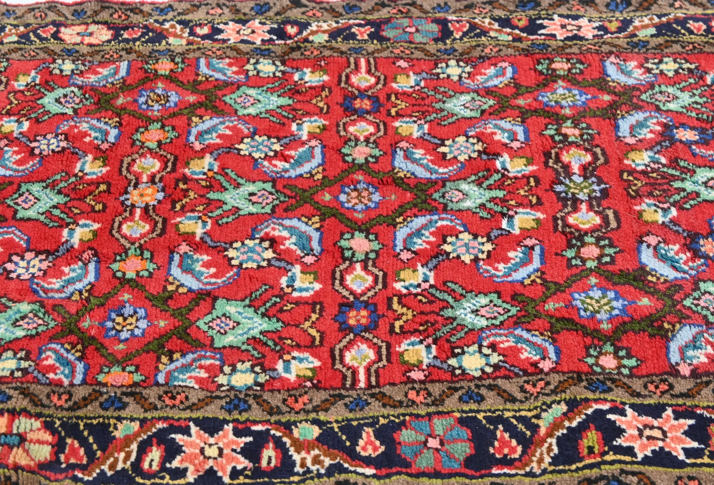 Handmade vintage 2'4X6'3 red Persian runner made with vegetable dyes (fine wool pile and cotton foundation), exceptional knot count, and appealing ancient designs. This Oriental runner never will go out of style and would be among your most valuable treasures.