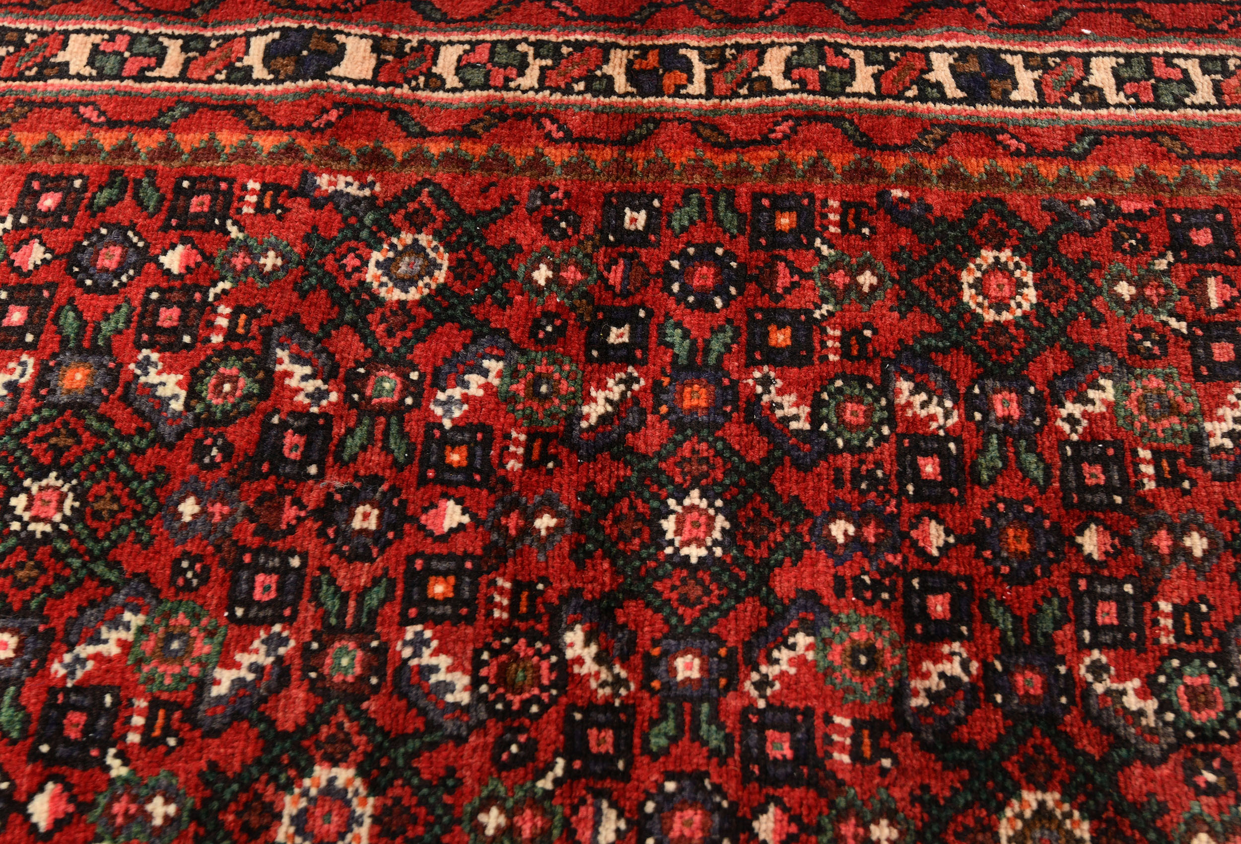 Vintage Red Tribal 2'9X12'5 Hossainabad Persian Runner Rug