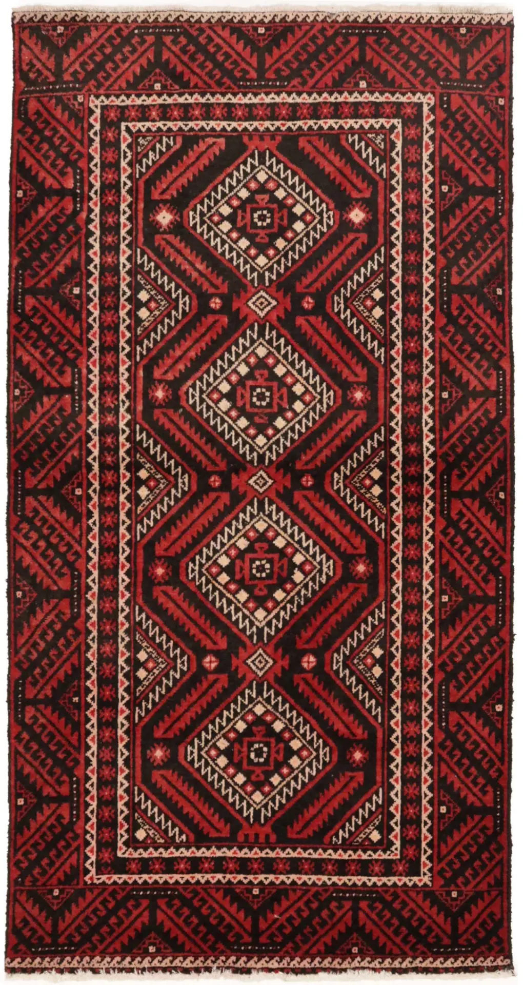 Red Vintage Tribal 3'3X6'5 Balouch Persian Oriental Rug