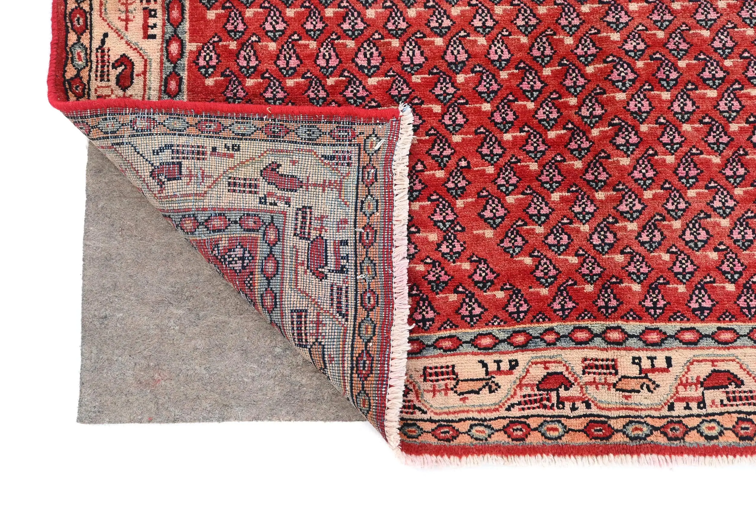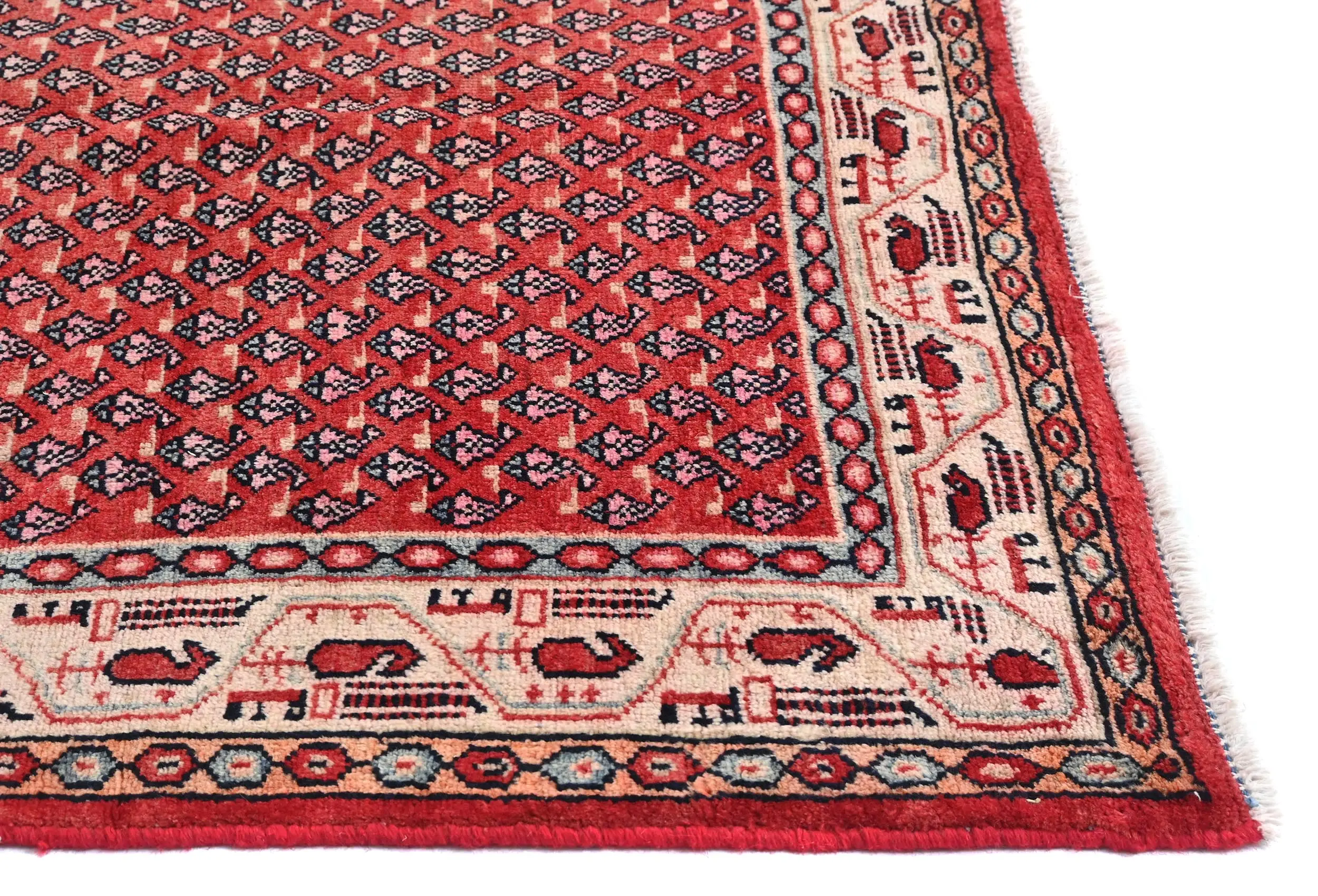 Handmade vintage 4'3X6'7 red Persian rug made with natural dyes (fine wool pile and cotton foundation), superior knot count, and appealing ancient designs. This Oriental rug never will go out of style and would be among your most valuable treasures.