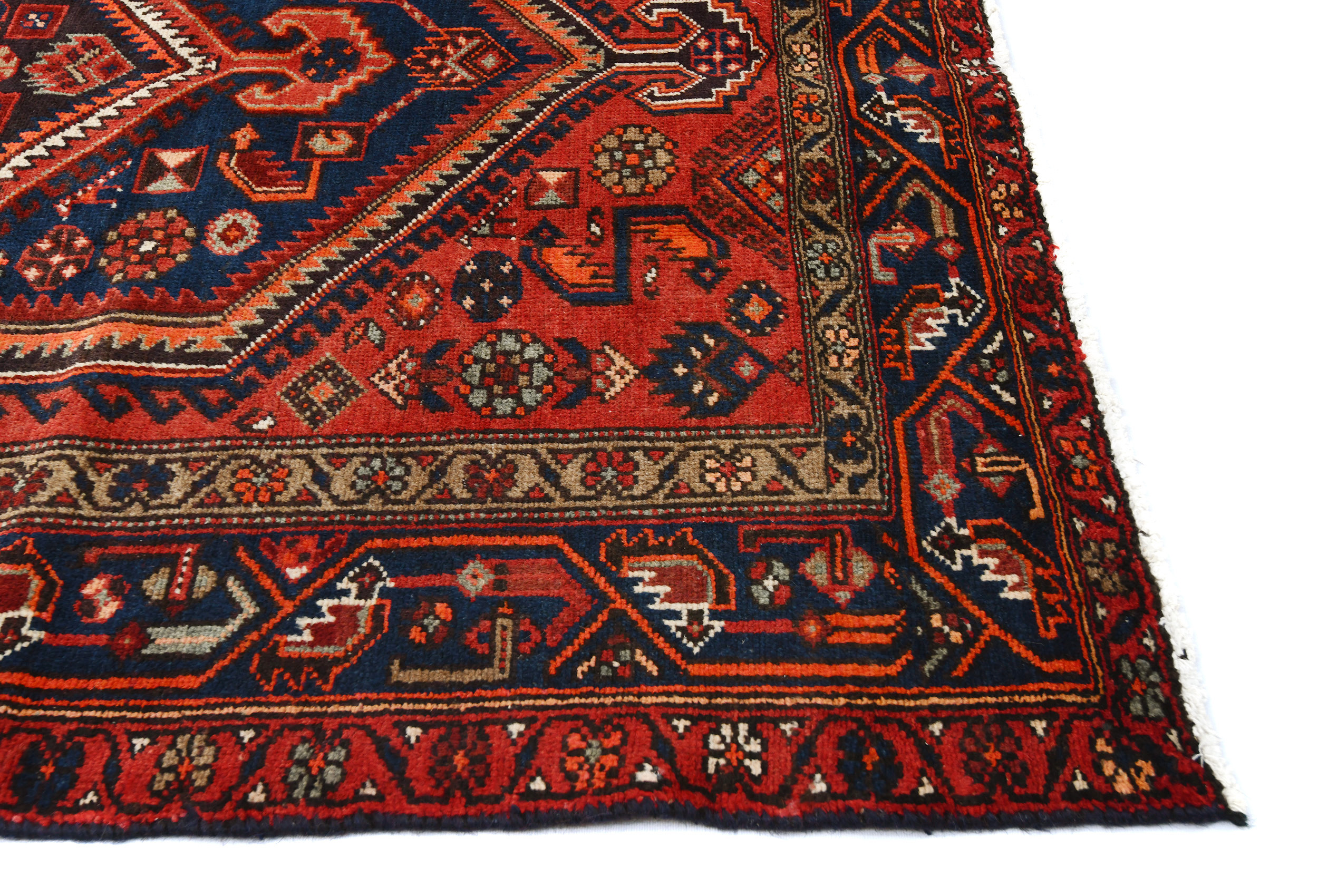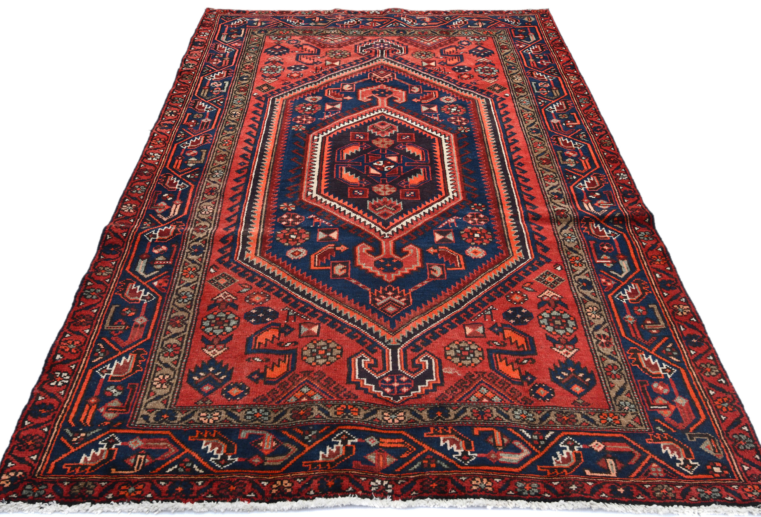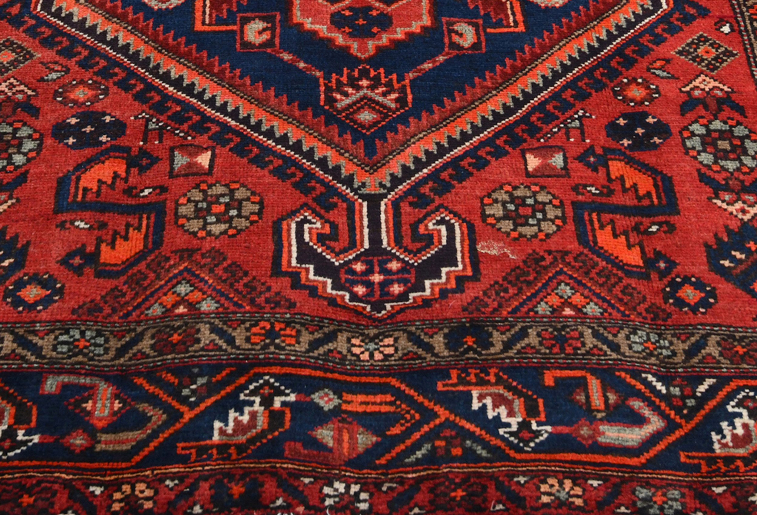 Handmade vintage 4'5X6'7 red Persian rug made with vegetable dyes (fine wool pile and cotton foundation), superior knot count, and alluring ancient designs. This Oriental rug never will go out of style and would be among your most valuable treasures.