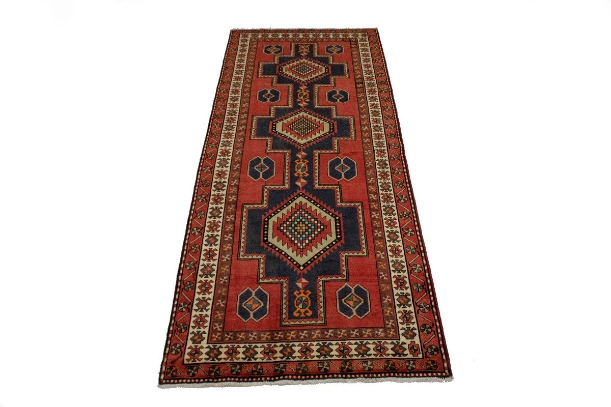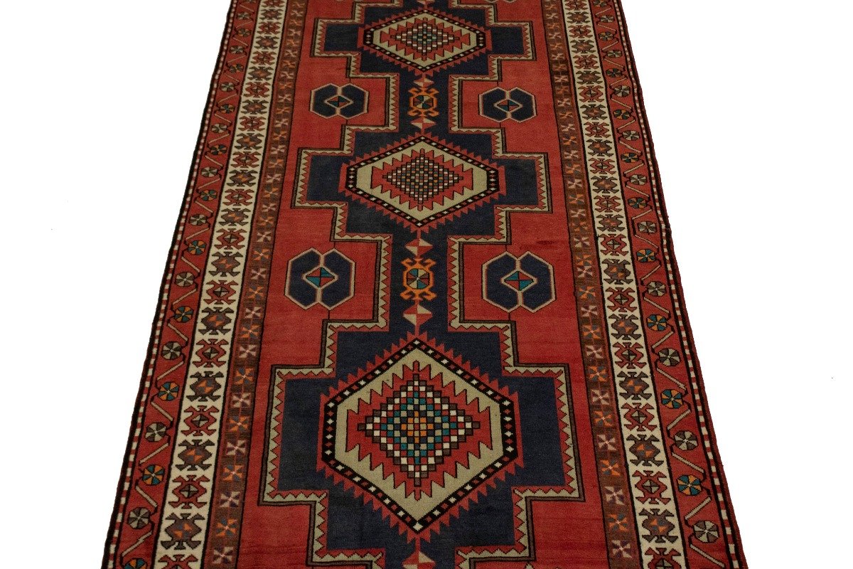This original 5X11 vintage Persian runner was crafted by the hands of skilled weavers enthused by a variety of lovely artistic designs, to recreate the aged look of the unique piece with a richness of color and beautifully elaborated background field. What set this geometric Oriental area runner from the others are the material and dye used (wool pile and cotton foundation), knot count, ancient designs, fantastic grades, and its regional historical connection: it has deep roots, from the story of the people who produced it to the meaning of the symbols and colors displayed across its canvas that have been praised for centuries. This home décor carpet will be completely cozy and inviting that never will go out of style! Also, this Oriental runner would be among your most valuable treasures, it is a great investment that increase in value over time, and it will last for generations because was woven with high-quality, all-natural wool; it won’t rip, tear, or shed. Environmentally friendly, opulent yet affordable; this Persian rug will give you a thorough amount of character to help define your living space with sophistication and warmth that will capture the eyes and attention of your audience (homeowners, designers, decorators, family and friends). EB-2439