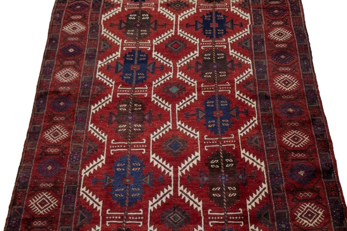 Hand Knotted semi antique 5X12 red tribal Persian runner made with natural dyes (fine wool pile and cotton foundation), superior knot count, and appealing ancient designs. This Oriental runner never will go out of style and would be among your most valuable treasures.