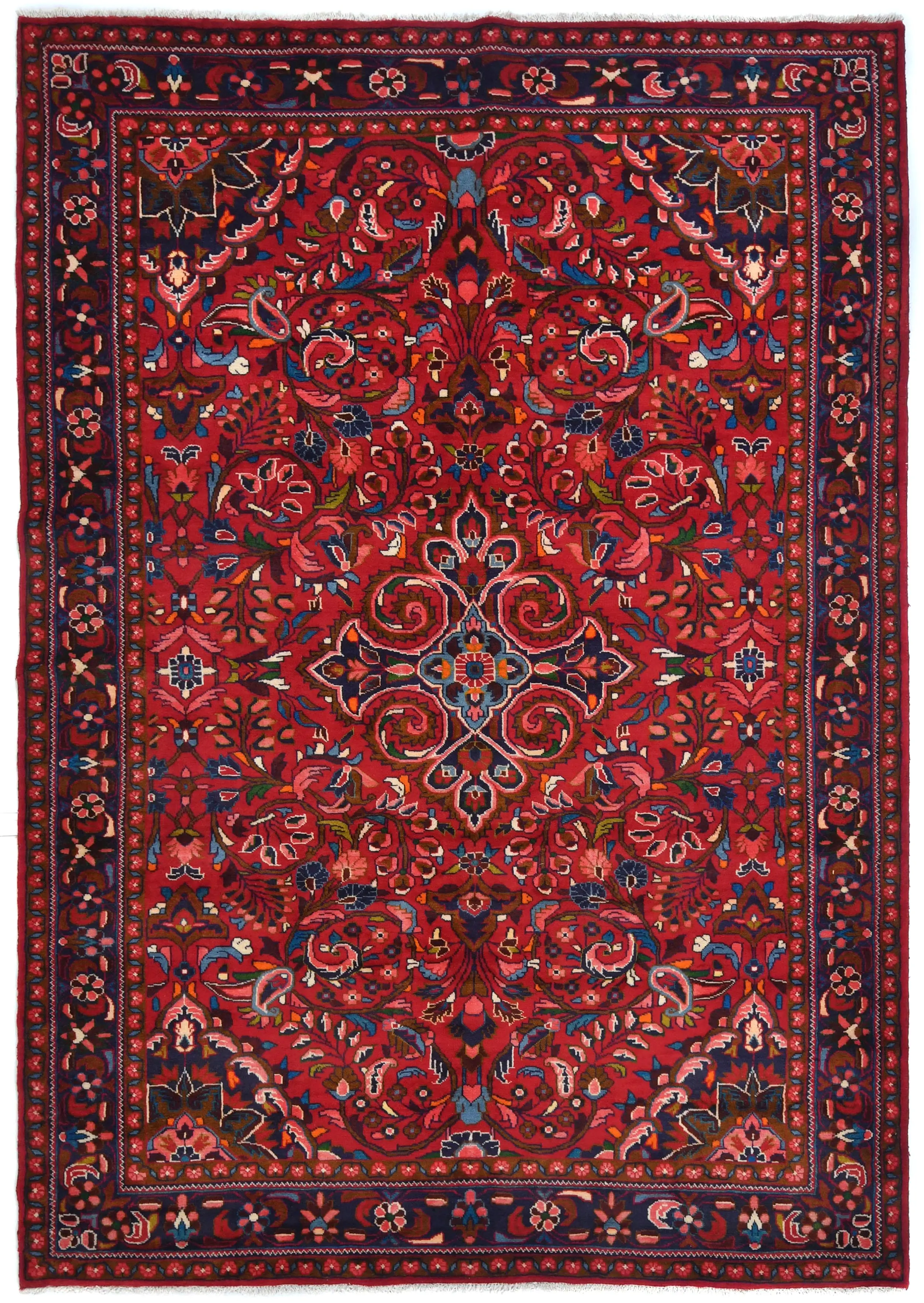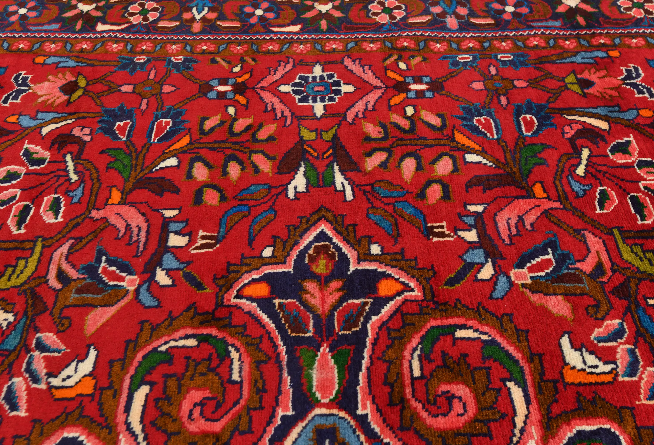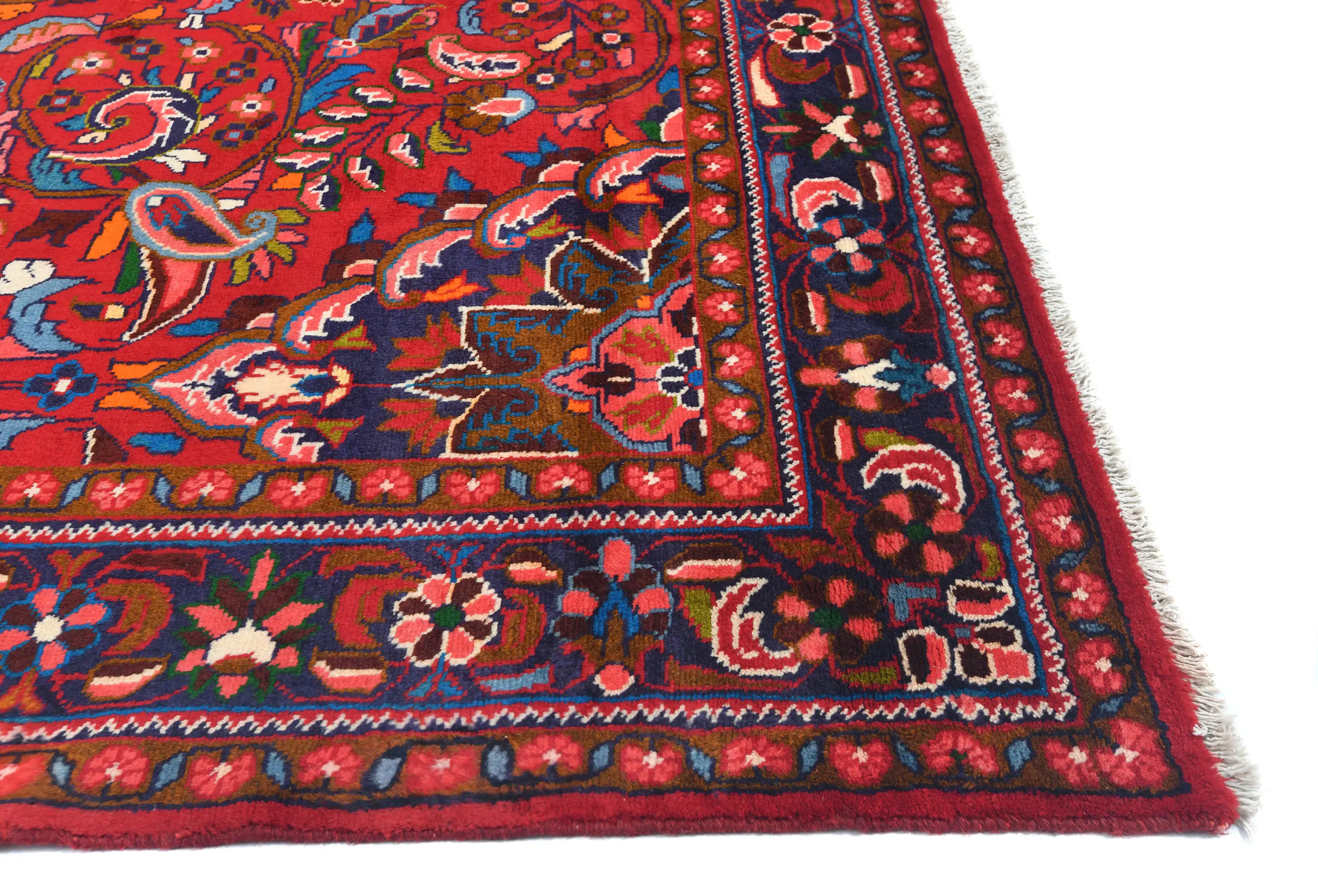 This authentic 7X10 red vintage Persian rug was finely knotted by the hands of weavers influenced by a variety of amazing artistic designs, to recreate the aged look of the exceptional piece with a richness of color and embellished floral background field. What set this traditional Oriental area rug from the others are the material and dye used (wool pile and cotton foundation), knot count, antique designs, fantastic grades, and its regional historical connection: it has deep roots, from the story of the people who produced it to the meaning of the symbols and colors displayed across its canvas that have been praised for centuries. This classic home décor carpet will be completely cozy and inviting that never will go out of style! Also, this Oriental rug would be among your most valuable treasures, it is a great investment that increase in value over time, and it will last a lifetime because was woven with high-quality, all-natural wool; it won’t rip, tear, or shed. Eco-friendly, opulent yet affordable; this Persian rug will give you an extra pop of character to help define your home environment with luxury and warmth that will capture the eyes and attention of your audience (homeowners, designers, decorators, family and friends). EB-7872