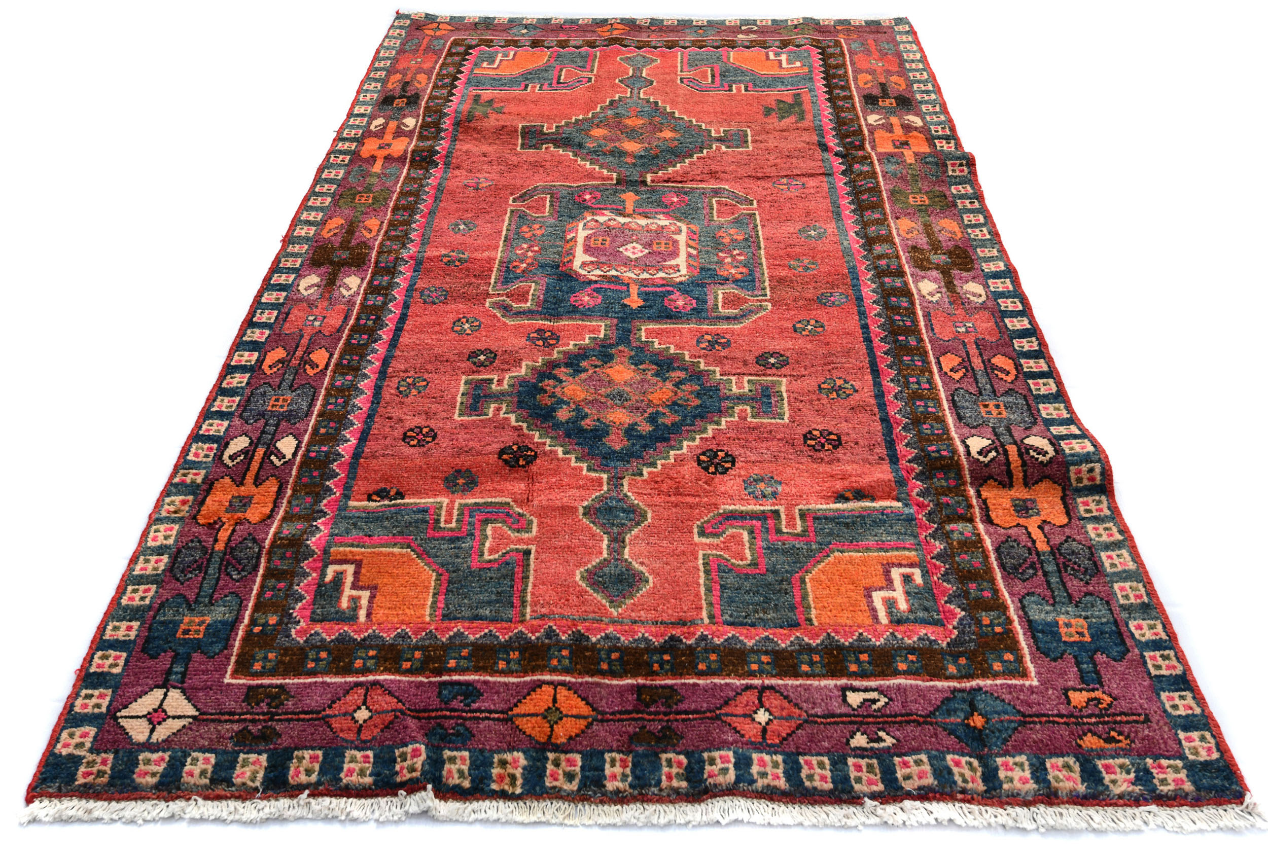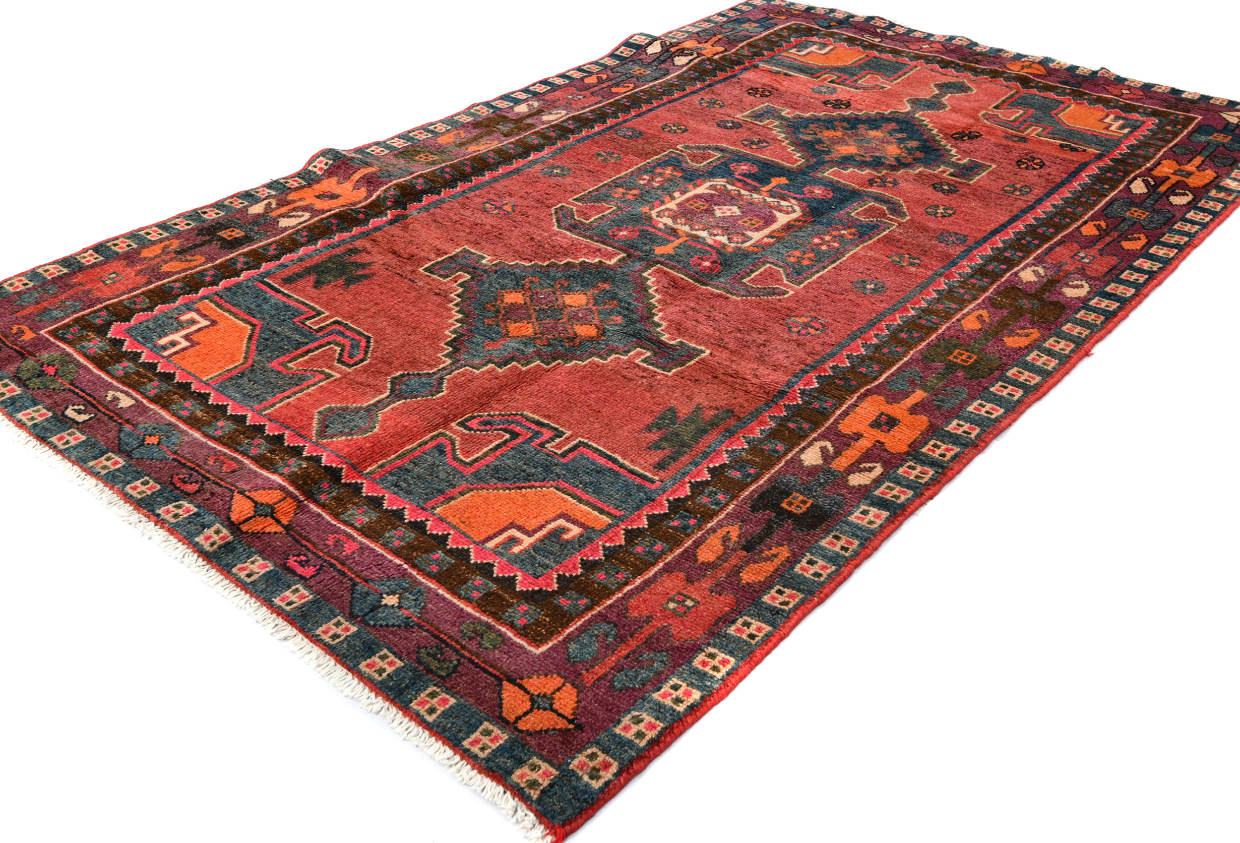 Muted Rose Red Vintage Tribal 4X7 Hamedan Persian Oriental Rug