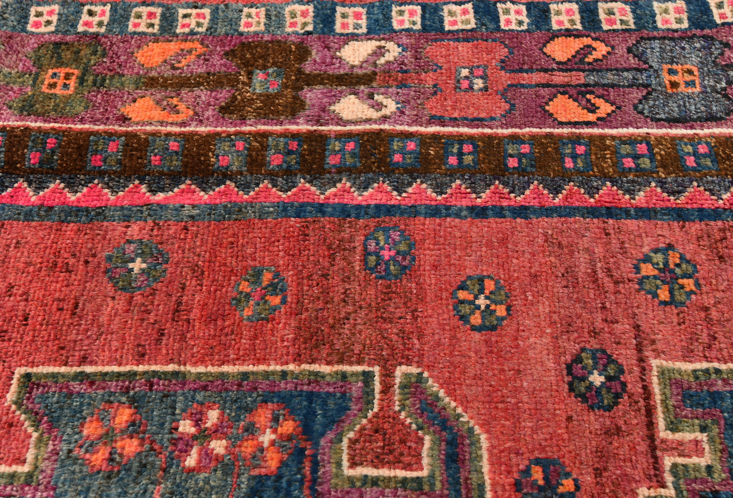 Handmade vintage 4X7 red Persian rug made with vegetable dyes (fine wool pile and cotton foundation), superior knot count, and alluring ancient designs. This Oriental rug never will go out of style and would be among your most valuable treasures.