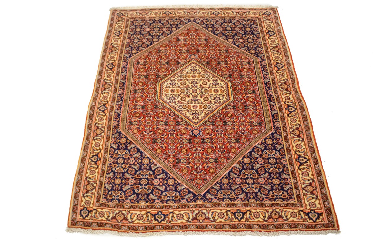 Vintage Rust Orange Floral 4X5 Bidjar Persian Rug