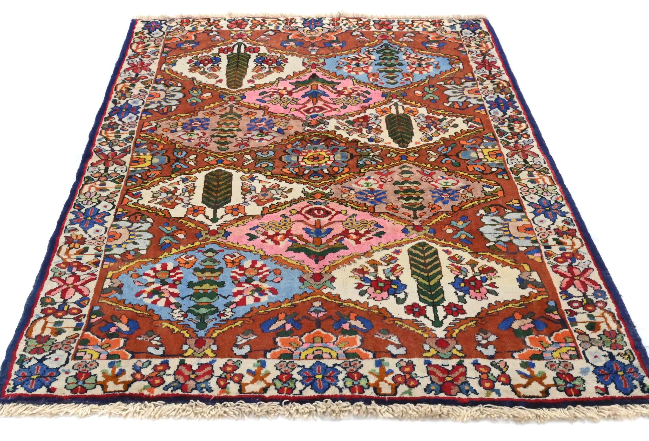 Vintage Rusty Red Floral 3X5 Bakhtiari Persian Rug