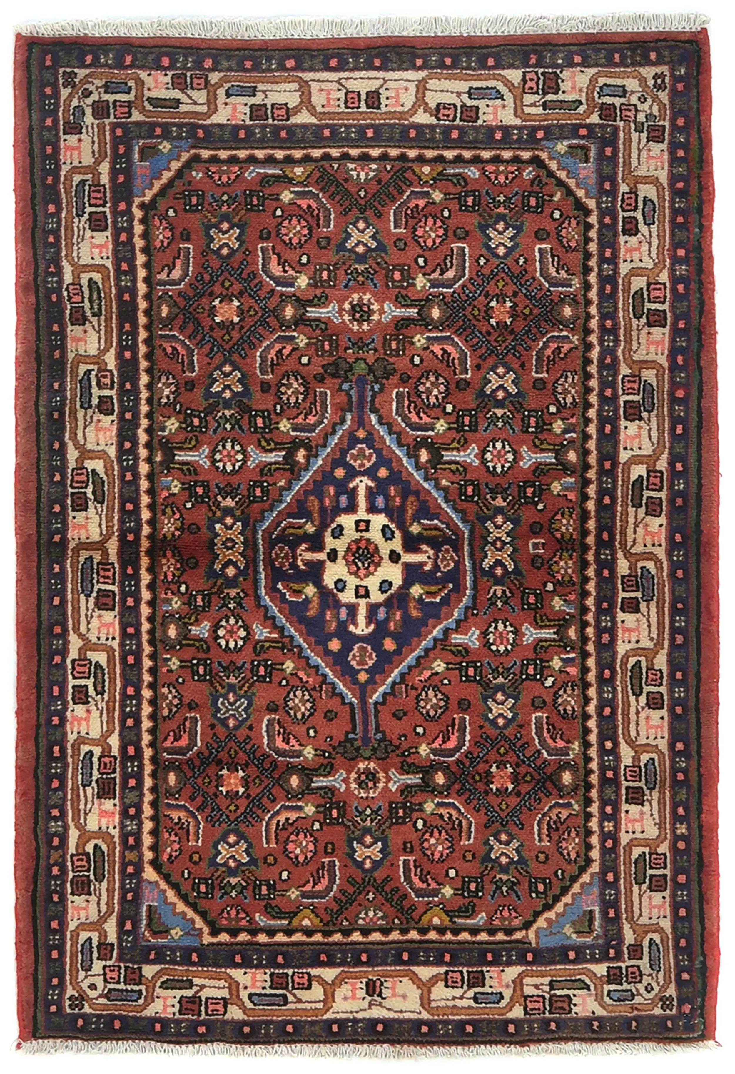 Handmade vintage 3'3X4'7 rusty red Persian rug made with vegetable dyes (fine wool pile and cotton foundation), exceptional knot count, and appealing ancient designs. This Oriental rug never will go out of style and would be among your most valuable treasures.