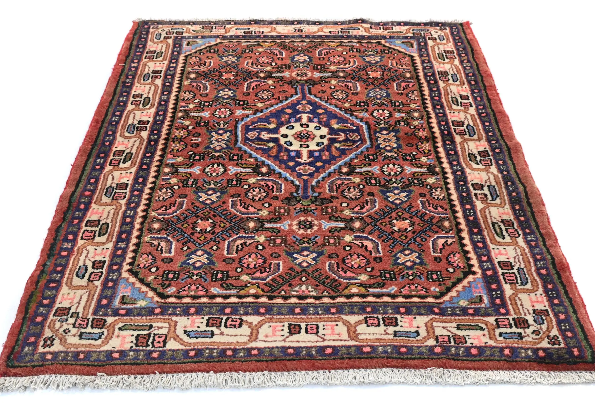 Vintage Rusty Red Floral Tribal 3'3X4'7 Hamedan Persian Rug