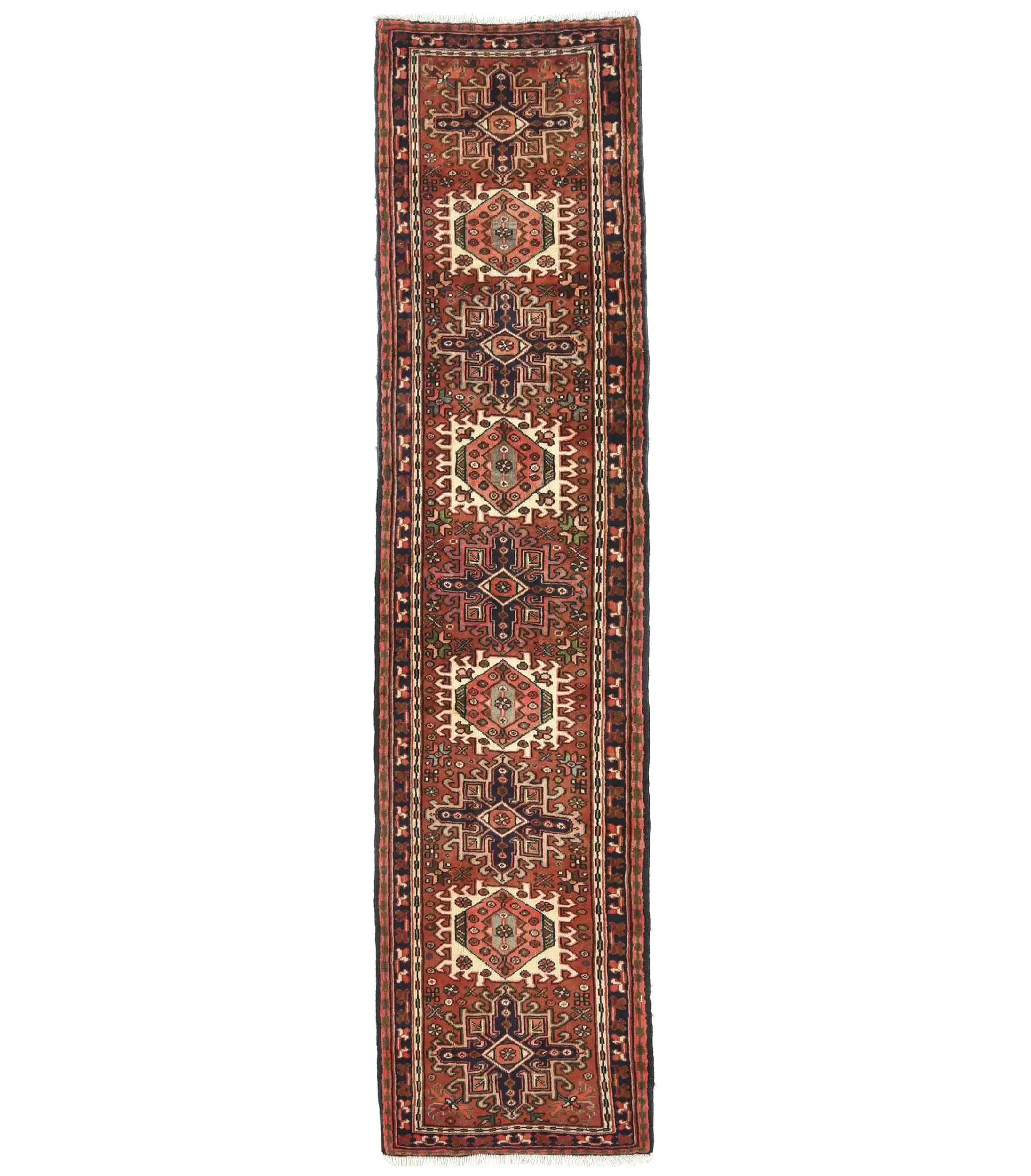 Vintage Rusty Red Geometric 2'5X9'5 Karajeh Persian Runner Rug