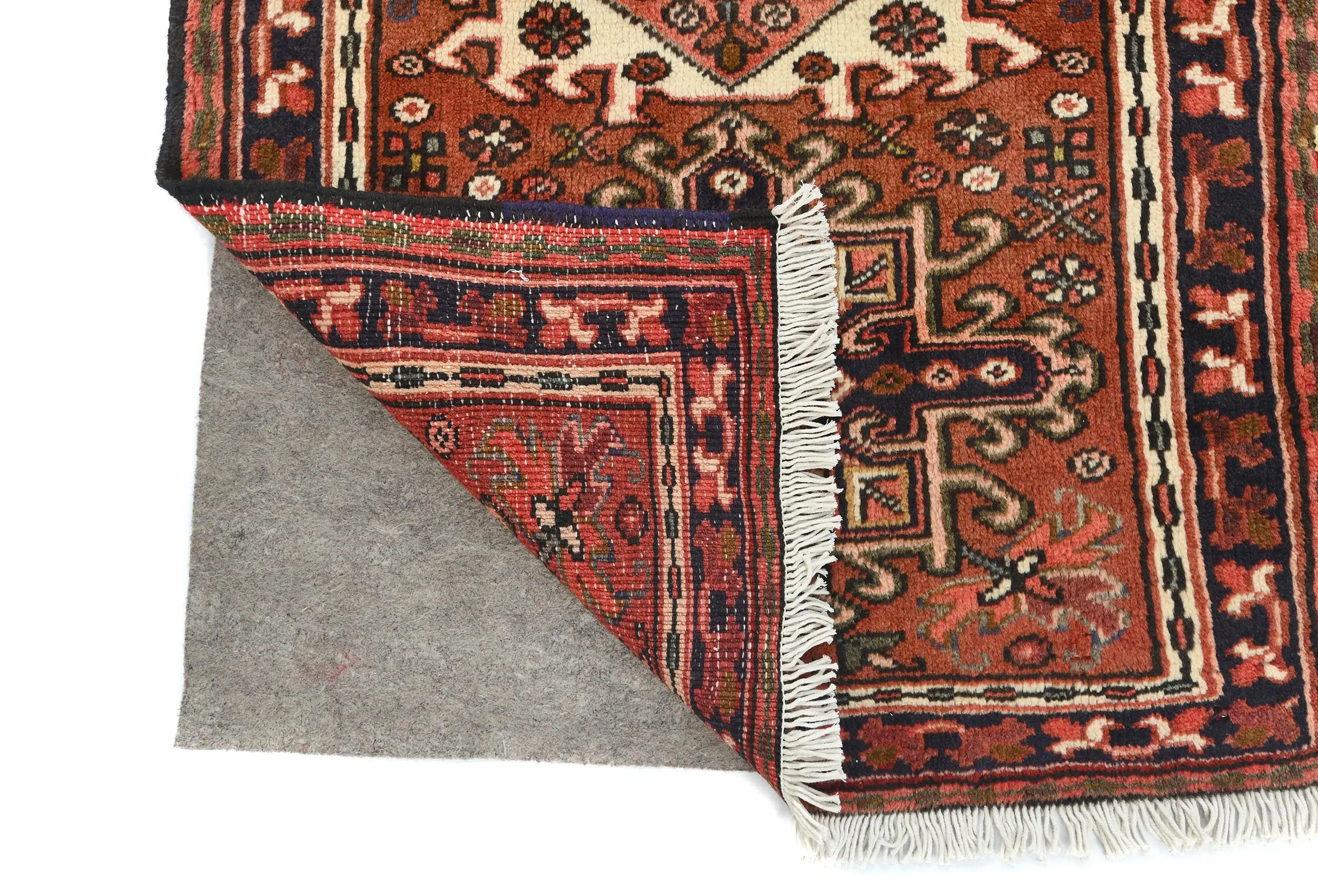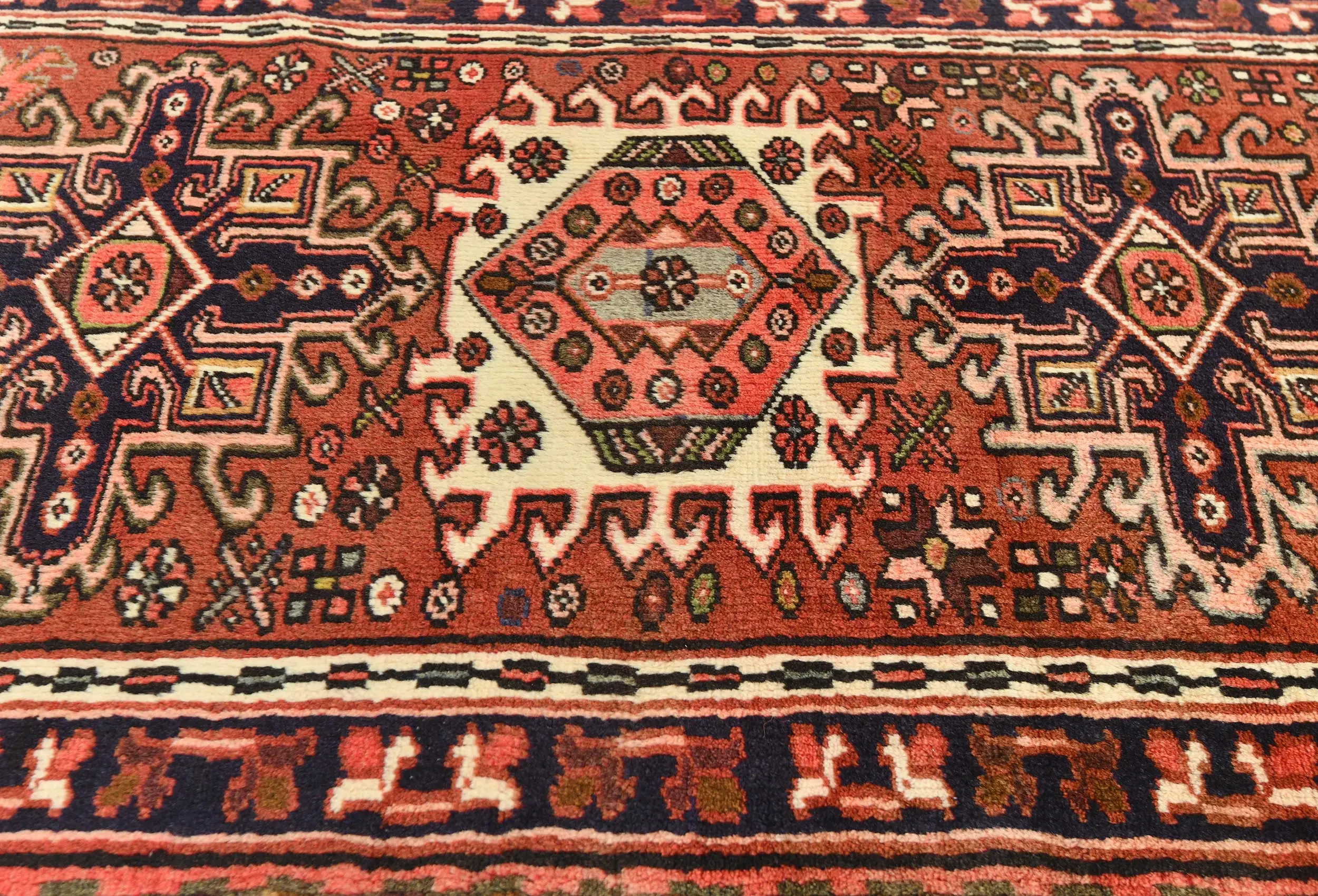 This original 2'5X9'5 Red vintage Persian runner was crafted by the hands of skilled weavers enthused by a variety of lovely artistic designs, to recreate the aged look of the unique piece with a richness of color and beautifully elaborated background field. What set this geometric Oriental area runner from the others are the material and dye used (wool pile and cotton foundation), knot count, ancient designs, fantastic grades, and its regional historical connection: it has deep roots, from the story of the people who produced it to the meaning of the symbols and colors displayed across its canvas that have been praised for centuries. This home décor carpet will be completely cozy and inviting that never will go out of style! Also, this Oriental runner would be among your most valuable treasures, it is a great investment that increase in value over time, and it will last for generations because was woven with high-quality, all-natural wool; it won’t rip, tear, or shed. Environmentally friendly, opulent yet affordable; this Persian rug will give you a thorough amount of character to help define your living space with sophistication and warmth that will capture the eyes and attention of your audience (homeowners, designers, decorators, family and friends). EB-7175