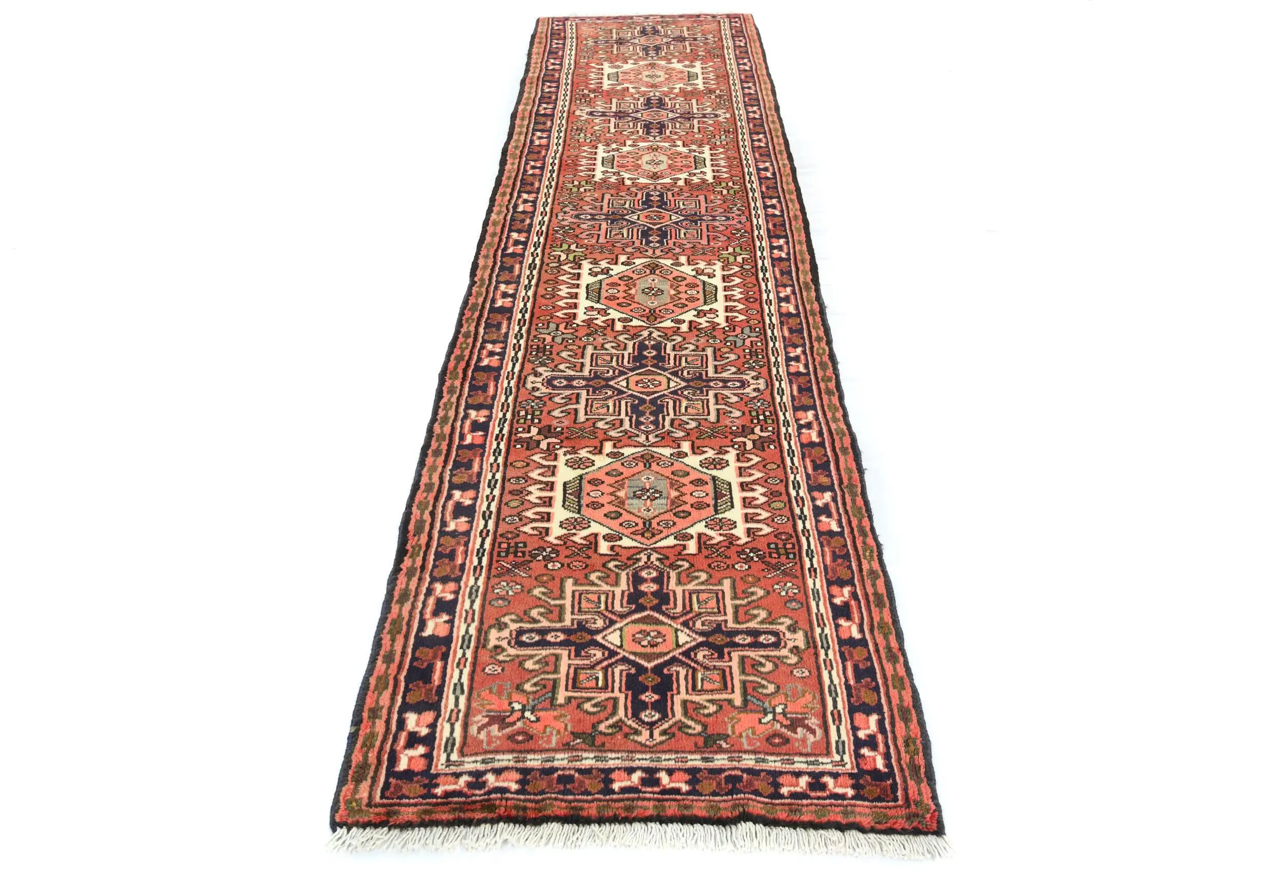 Hand Knotted 2'5X9'5 Red Persian runner made with vegetable dyes (fine wool pile and cotton foundation), exceptional knot count, and appealing ancient designs. This Oriental runner never will go out of style and would be among your most valuable treasures.