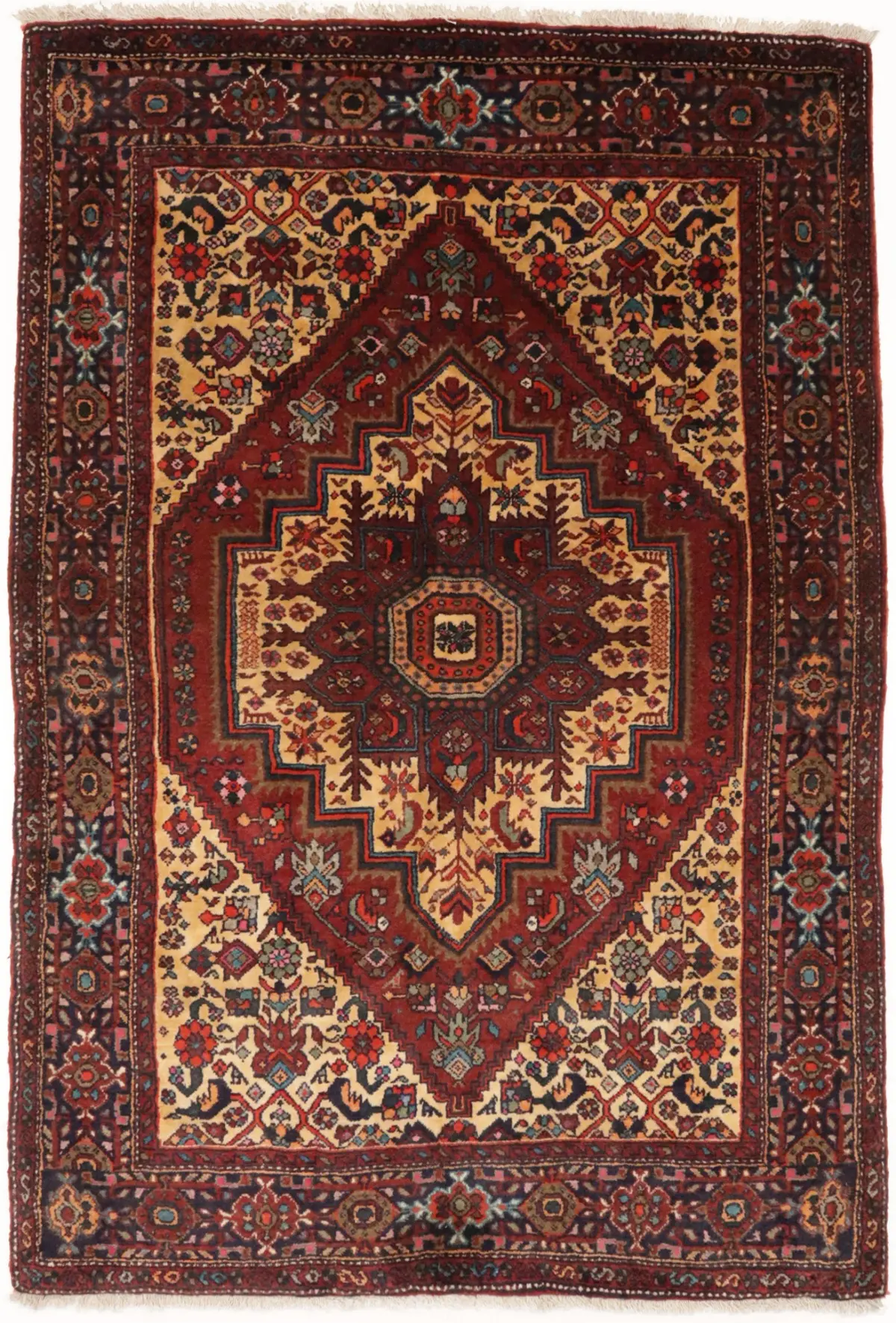 Hand Knotted vintage 3X5 red Persian rug made with natural dyes (fine wool pile and cotton foundation), superior knot count, and appealing ancient designs. This Oriental rug never will go out of style and would be among your most valuable treasures.