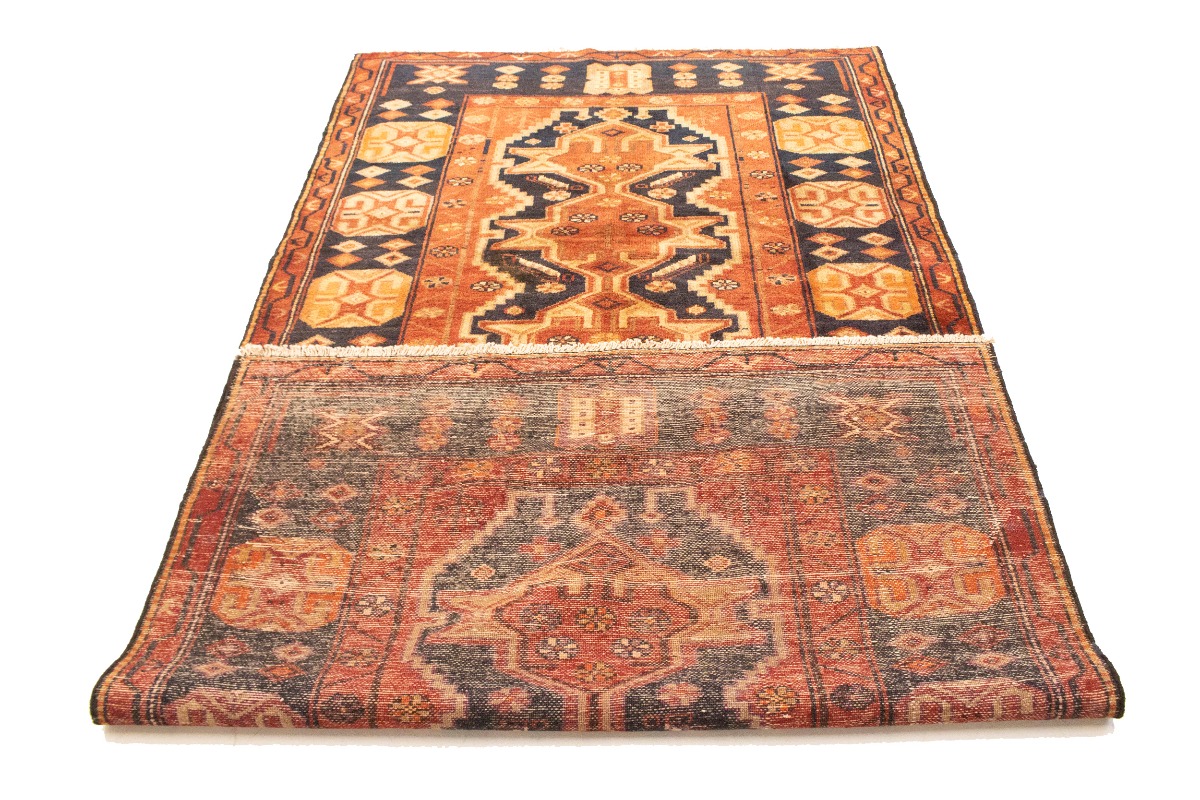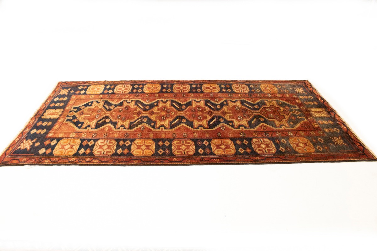 This authentic 5X9 rusty red vintage Persian runner was masterly knotted by the hands of weavers inspired by a variety of wonderful artistic designs, to recreate the aged look of the original piece with a richness of color and intricate patterned background field. What set this tribal Oriental area runner from the others are the material and dye used (wool pile and cotton foundation), knot count, antique designs, fantastic grades, and its regional historical connection: it has deep roots, from the story of the people who produced it to the meaning of the symbols and colors displayed across its canvas that have been praised for centuries. This home décor carpet will be completely cozy and inviting that never will go out of style! Also, this Oriental runner would be among your most valuable treasures, it is a great investment that accrues value over time, and it will last for generations because was woven with high-quality, all-natural wool; it won’t rip, tear, or shed. Environmentally friendly, opulent yet affordable; this Persian rug will give you a thorough amount of character to help define your living space with luxury and warmth that will capture the eyes and attention of your audience (homeowners, designers, decorators, family and friends). EB-5916