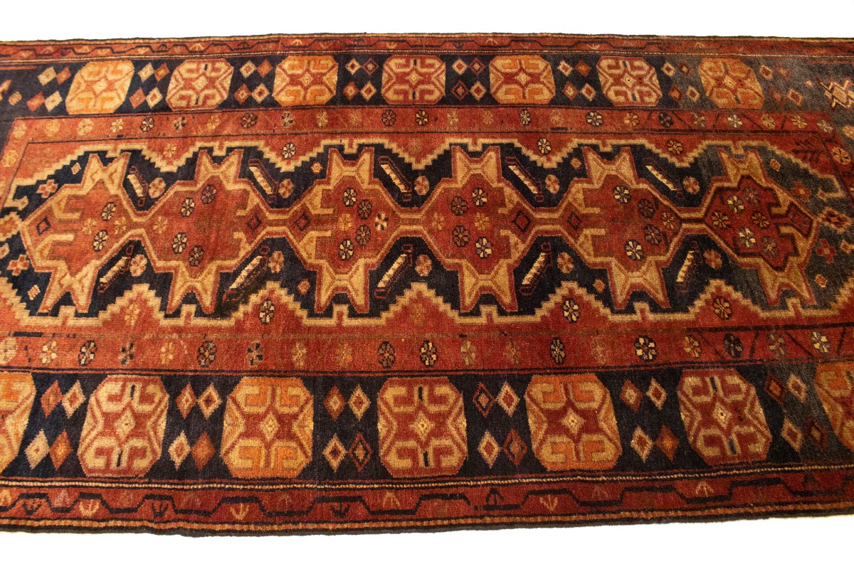 Hand Knotted vintage 5X9 rusty red Persian runner made with natural dyes (fine wool pile and cotton foundation), superior knot count, and alluring ancient designs. This Oriental runner never will go out of style and would be among your most valuable treasures.