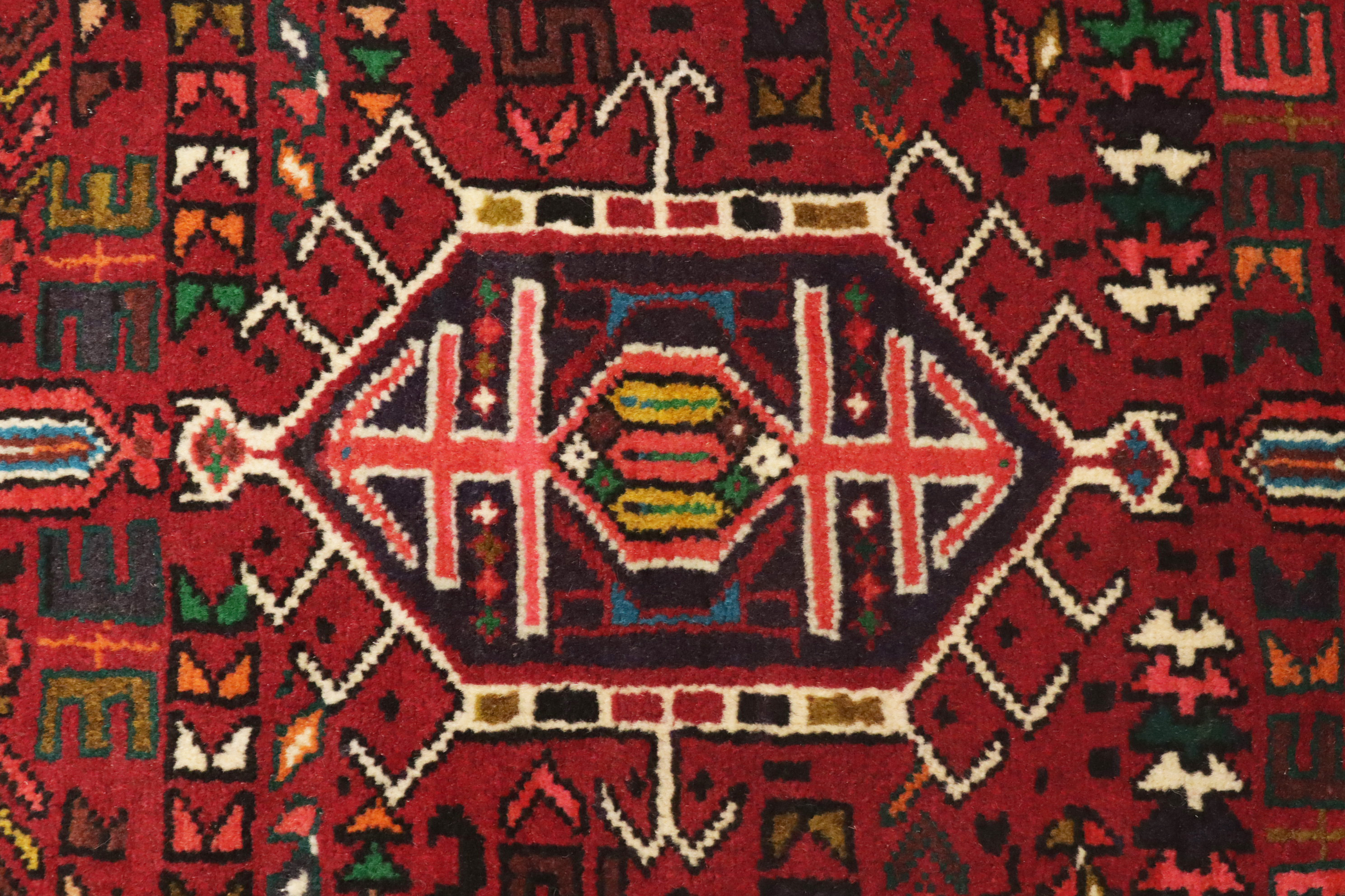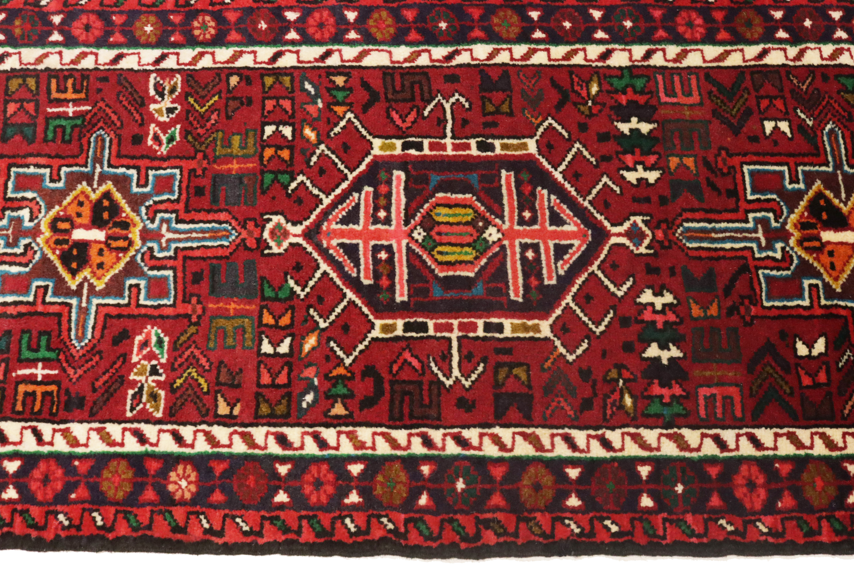 Vintage Scarlet Red Geometric 2X9 Karajeh Persian Runner Rug