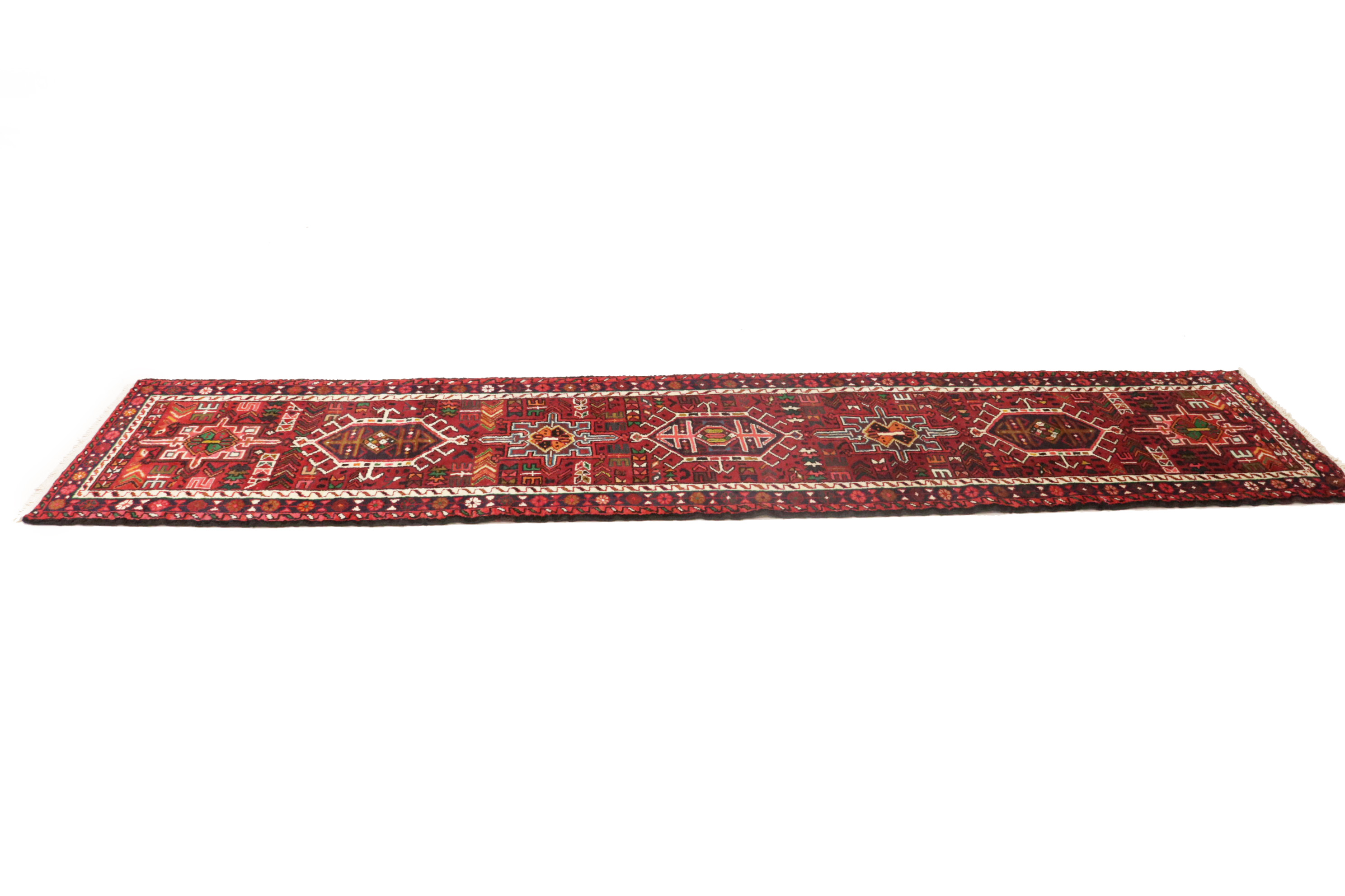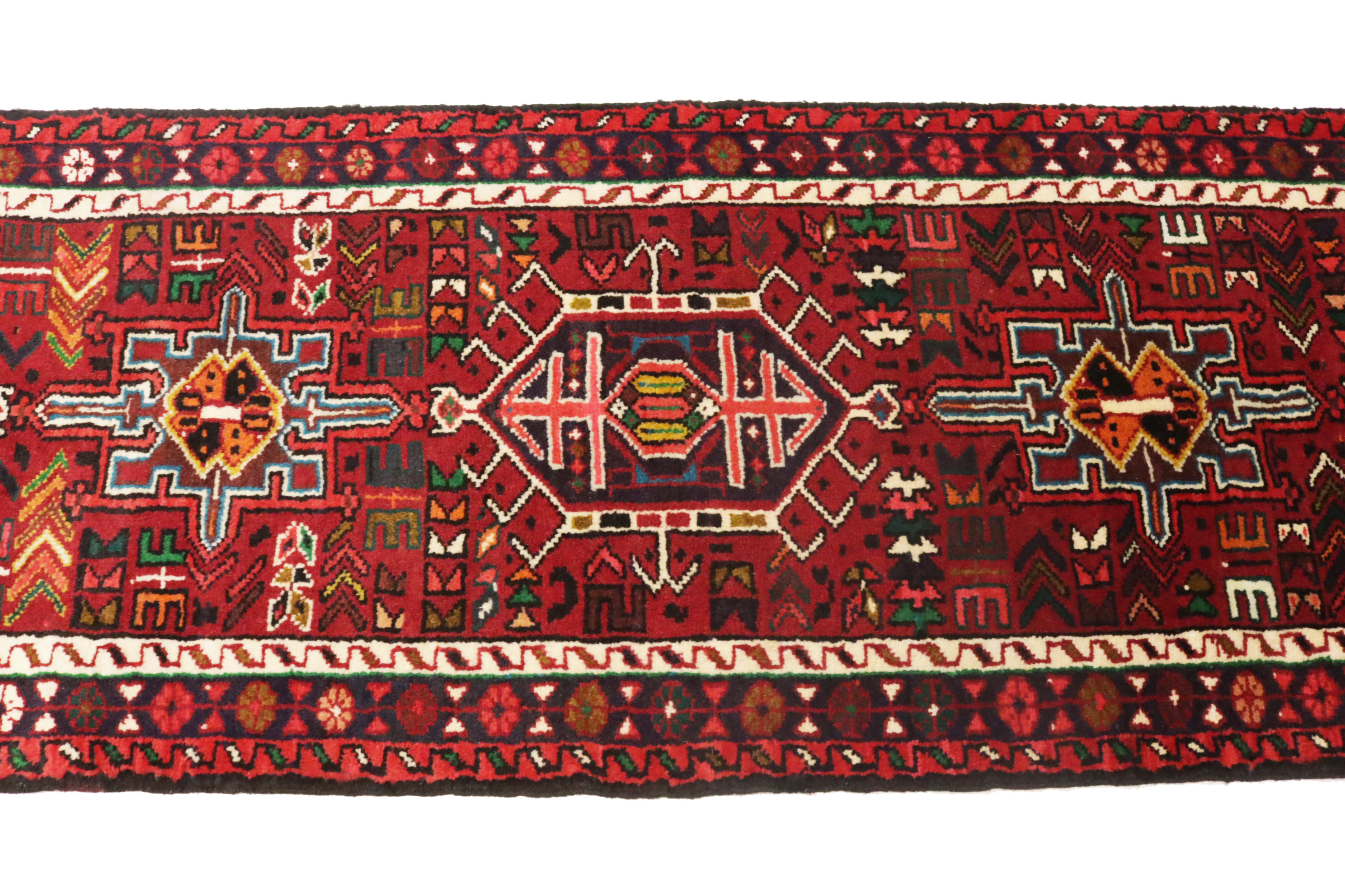 Handmade vintage 2X9 red Persian runner made with natural dyes (fine wool pile and cotton foundation), superior knot count, and appealing ancient designs. This Oriental runner never will go out of style and would be among your most valuable treasures.