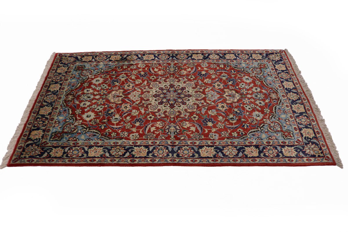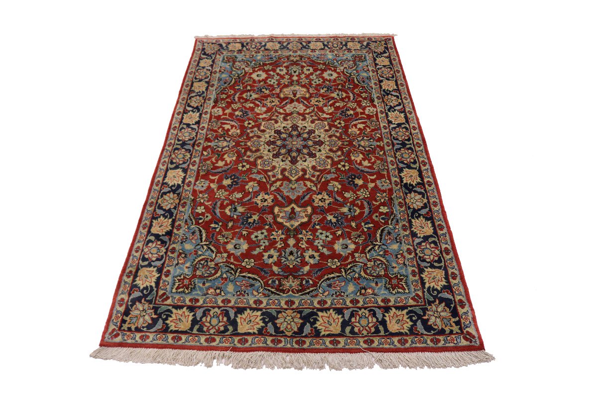 Vintage Scarlet Red Traditional 3'6X6'2 Isfahan Persian Rug