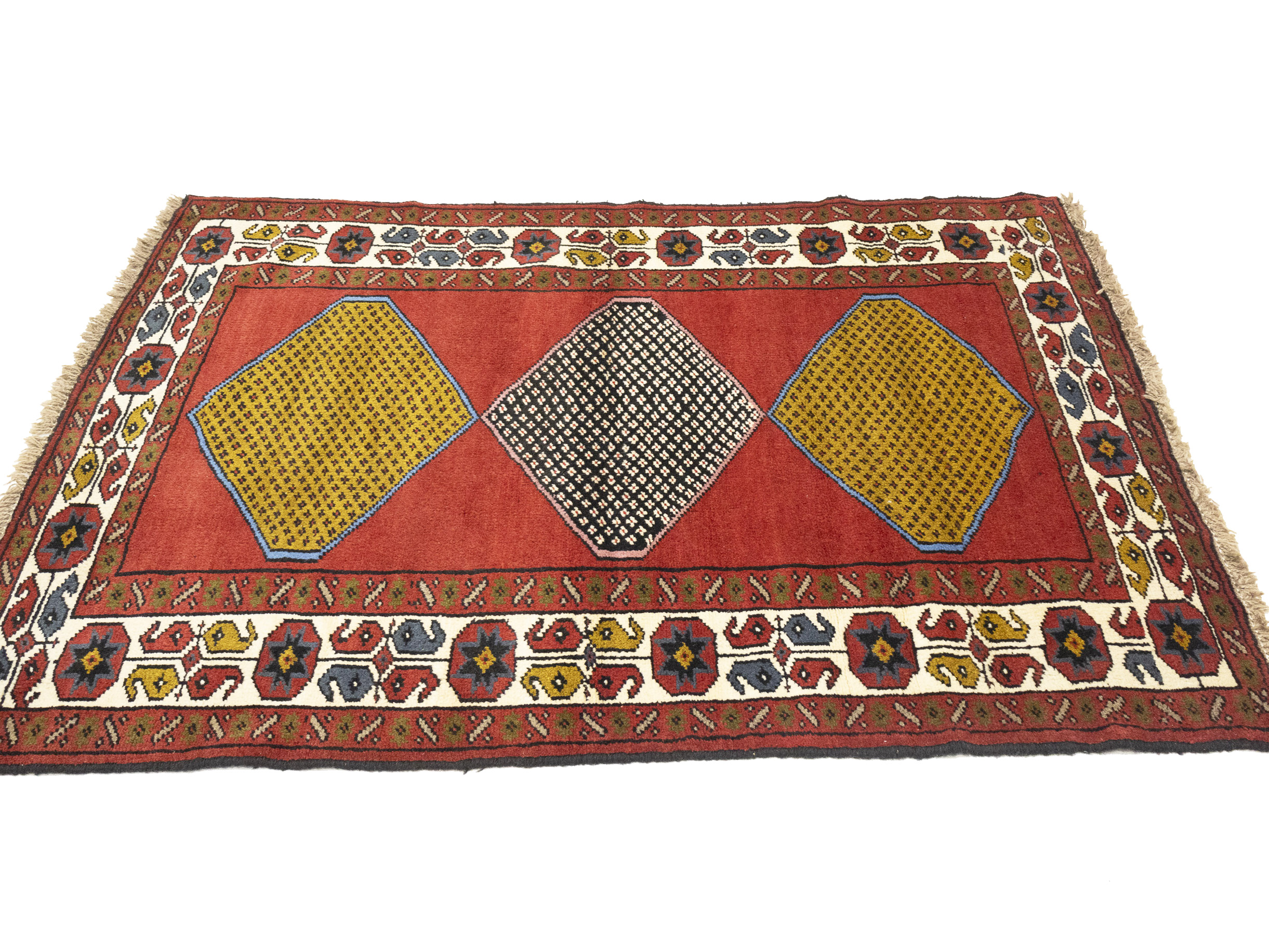 Vintage Scarlet Red Tribal 4X6 Ghoochan Persian Rug