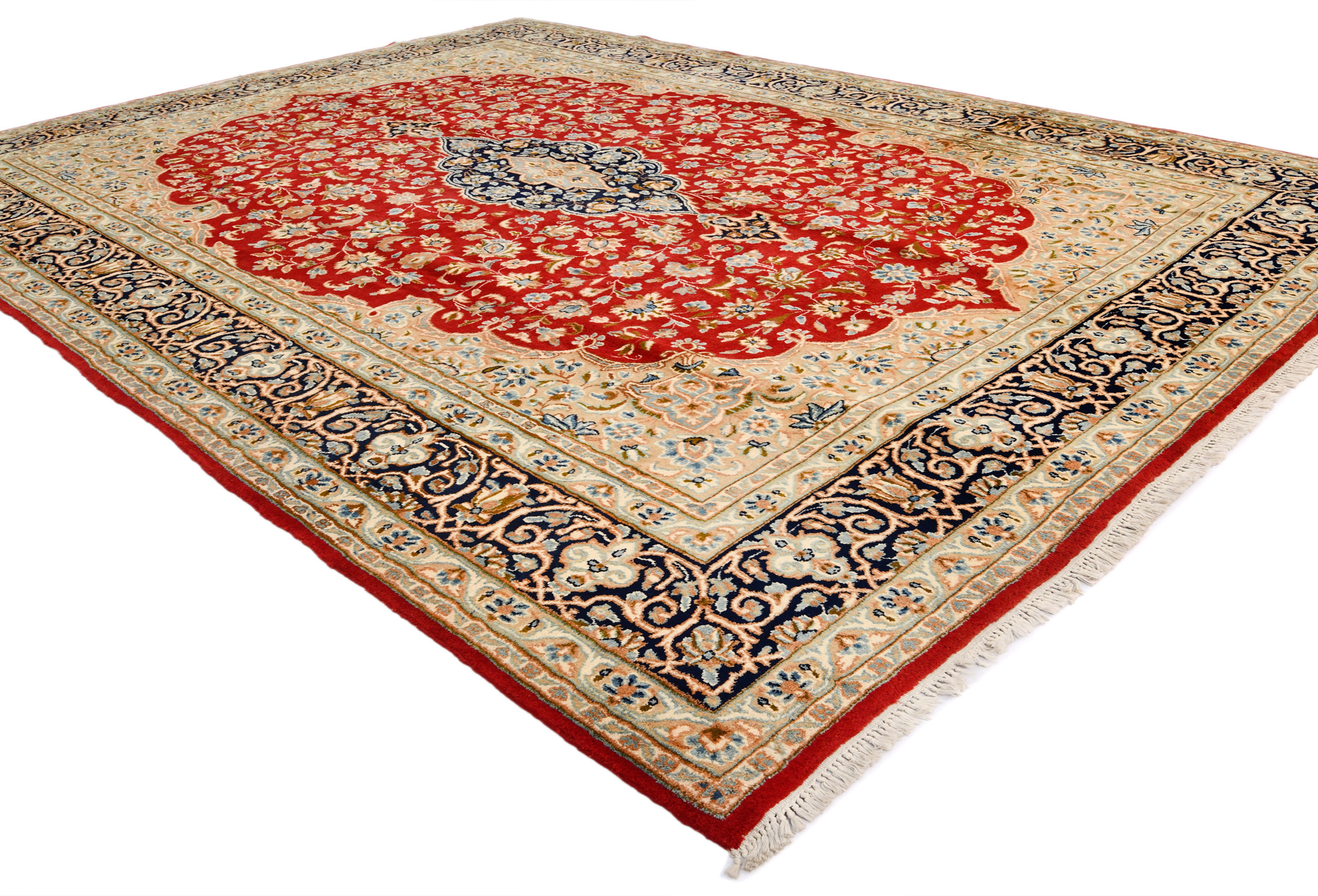 Handmade vintage 9X12 red Persian rug made with vegetable dyes (fine wool pile and cotton foundation), superior knot count, and alluring ancient designs. This Oriental rug never will go out of style and would be among your most valuable treasures.