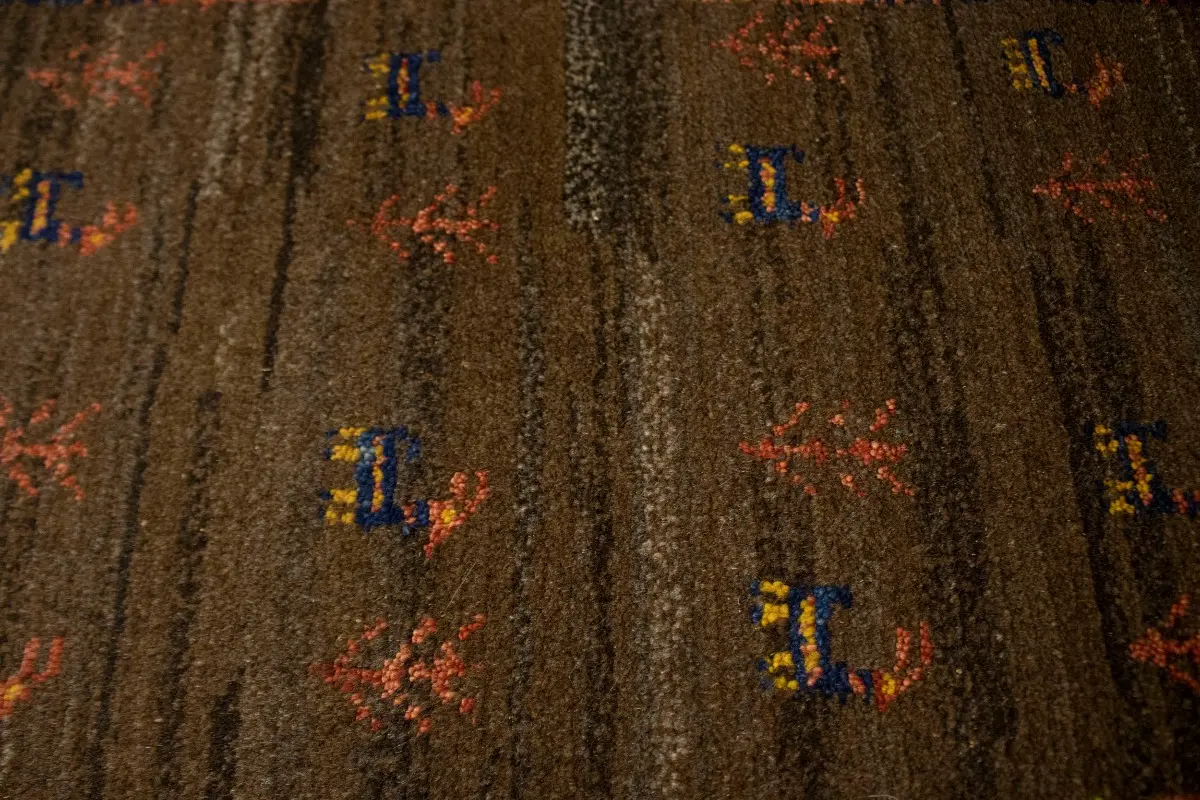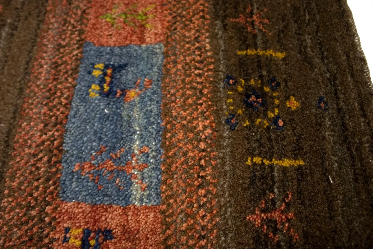 Brown Vintage Tribal 3'4X4'8 Gabbeh Persian Oriental Rug