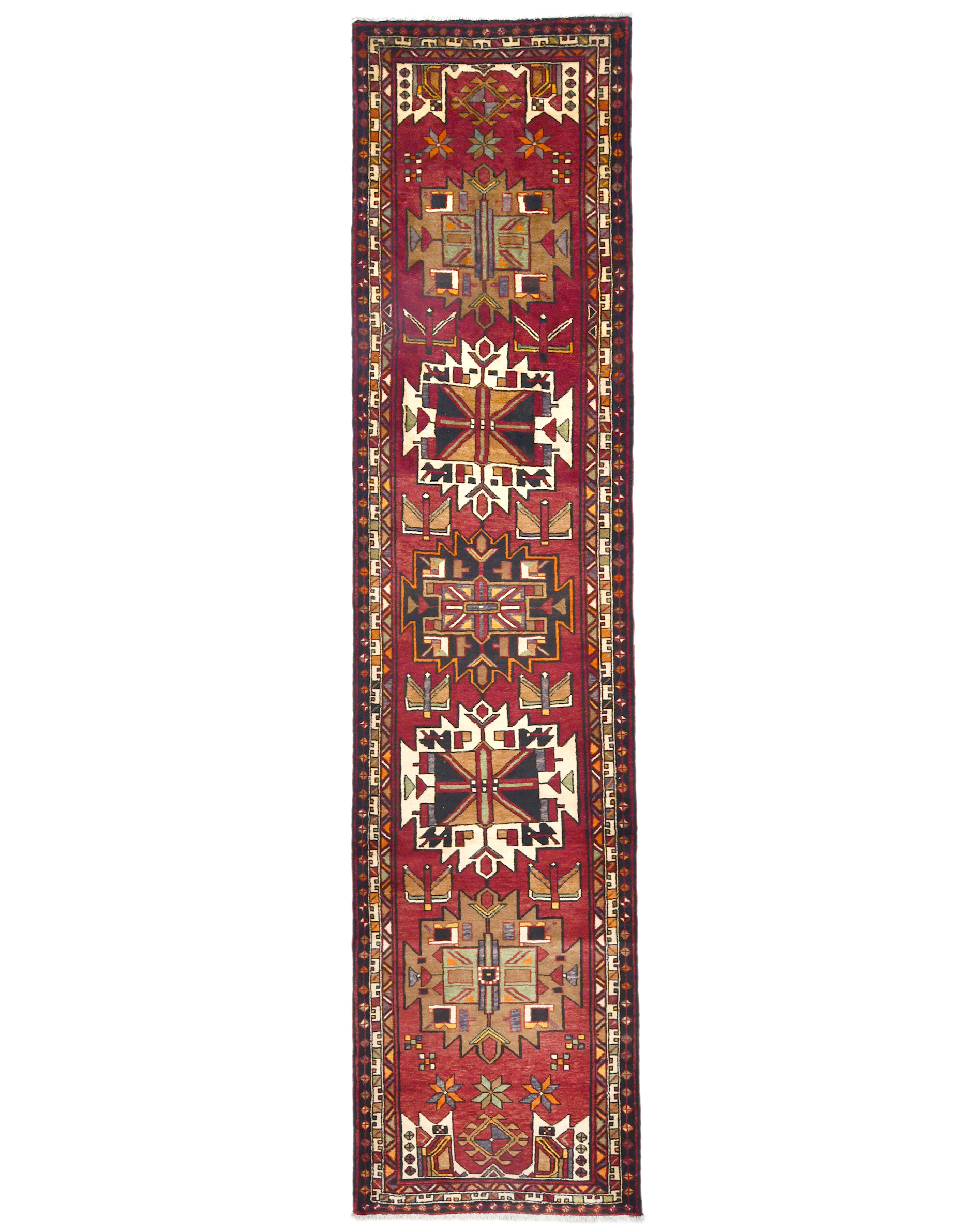 Handmade 3'3X13'5 red vintage Persian runner made with vegetable dyes (fine wool pile and cotton foundation), superior knot count, and alluring ancient designs. This Oriental runner never will go out of style and would be among your most valuable treasures.