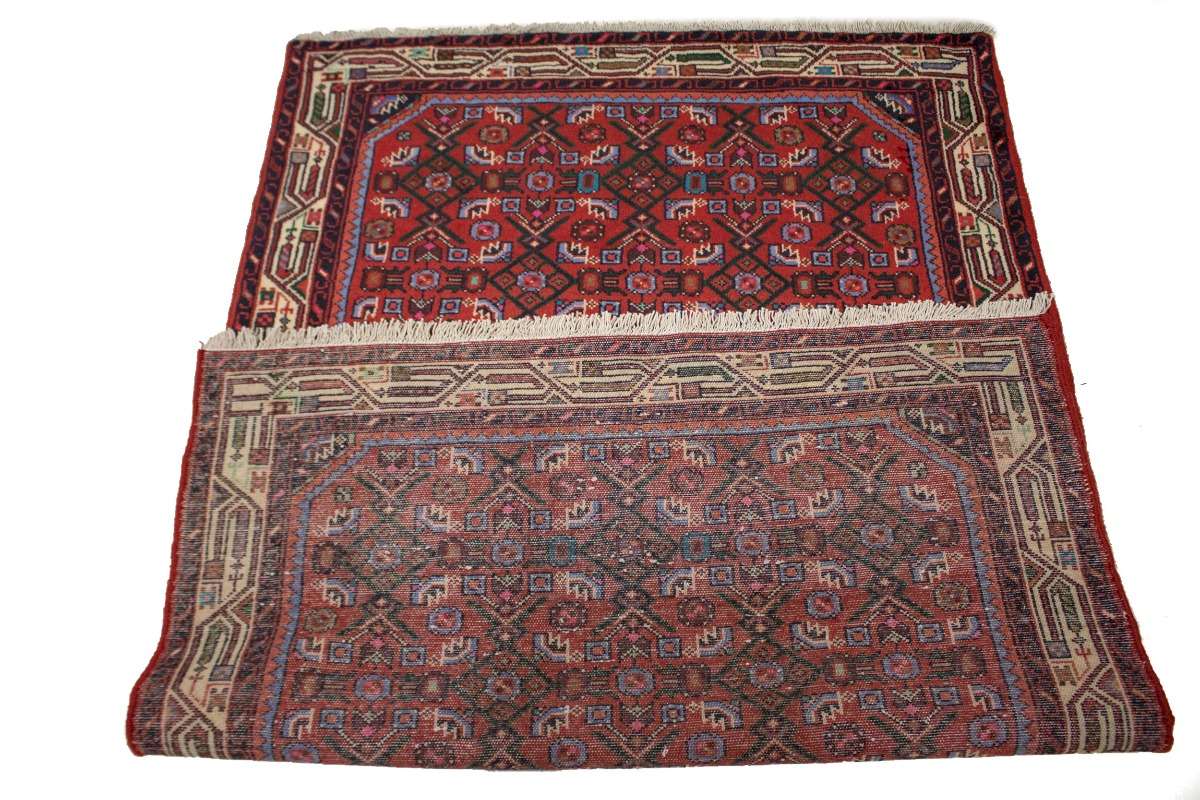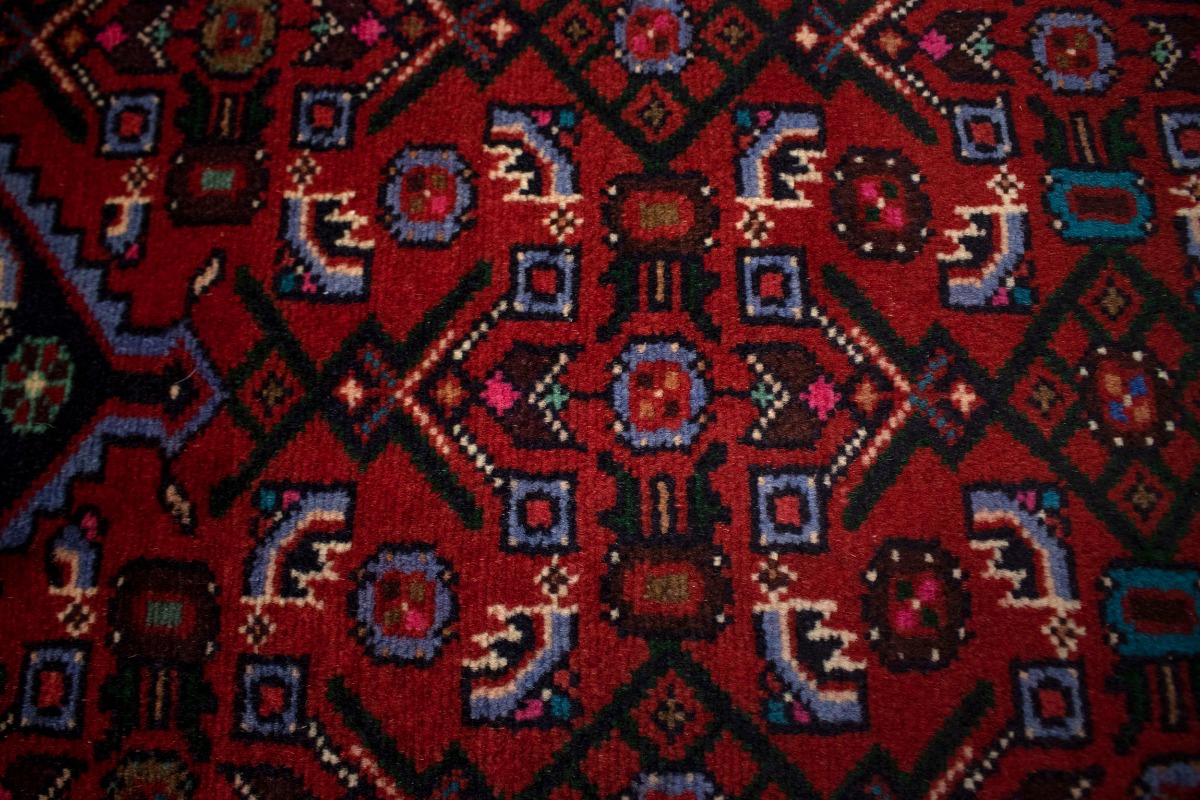 This authentic 3'7X5'4 red vintage Persian rug was masterly knotted by the hands of weavers inspired by a variety of wonderful artistic designs, to recreate the aged look of the original piece with a richness of color and intricate patterned background field. What set this tribal Oriental area rug from the others are the material and dye used (wool pile and cotton foundation), knot count, antique designs, fantastic grades, and its regional historical connection: it has deep roots, from the story of the people who produced it to the meaning of the symbols and colors displayed across its canvas that have been praised for centuries. This home décor carpet will be completely cozy and inviting that never will go out of style! Also, this Oriental rug would be among your most valuable treasures, it is a great investment that accrues value over time, and it will last for generations because was woven with high-quality, all-natural wool; it won’t rip, tear, or shed. Environmentally friendly, opulent yet affordable; this Persian rug will give you a thorough amount of character to help define your living space with luxury and warmth that will capture the eyes and attention of your audience (homeowners, designers, decorators, family and friends). EB-5057