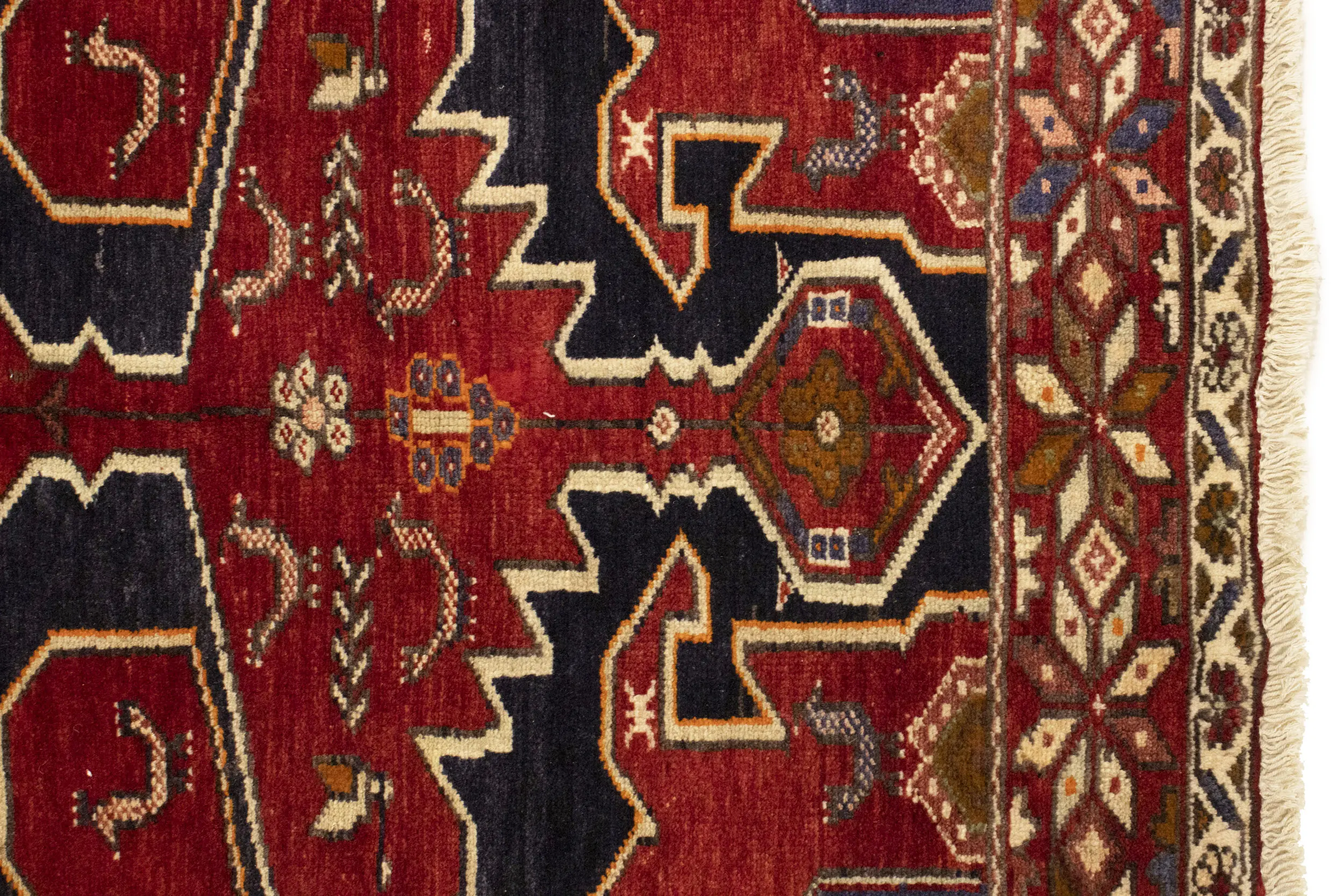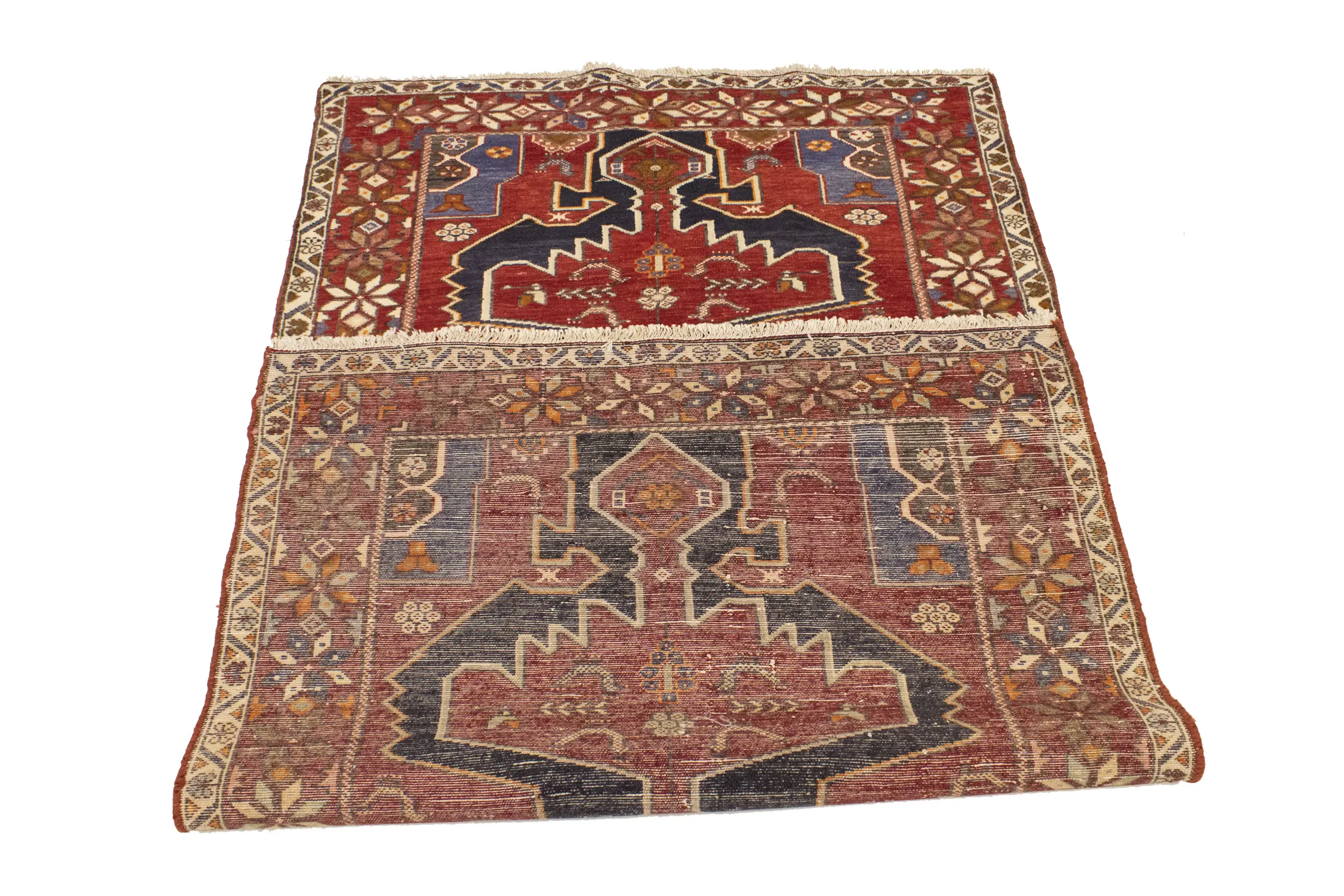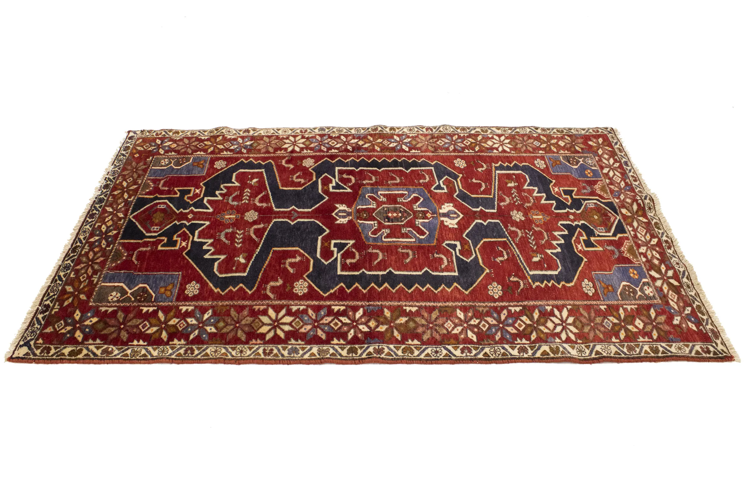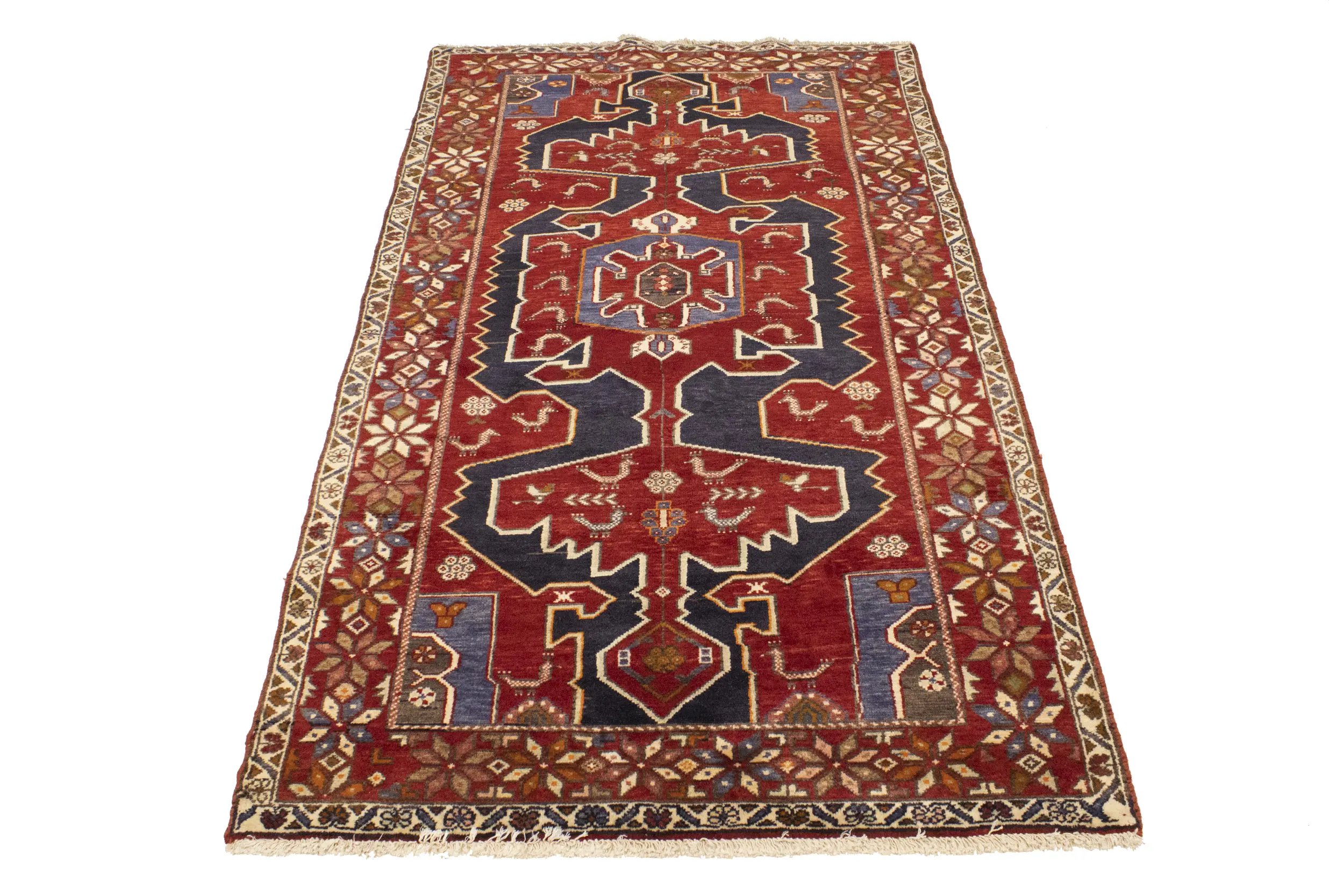 Hand Knotted vintage 3'9X6'4 red Persian rug made with vegetable dyes (fine wool pile and cotton foundation), exceptional knot count, and appealing ancient designs. This Oriental rug never will go out of style and would be among your most valuable treasures.
