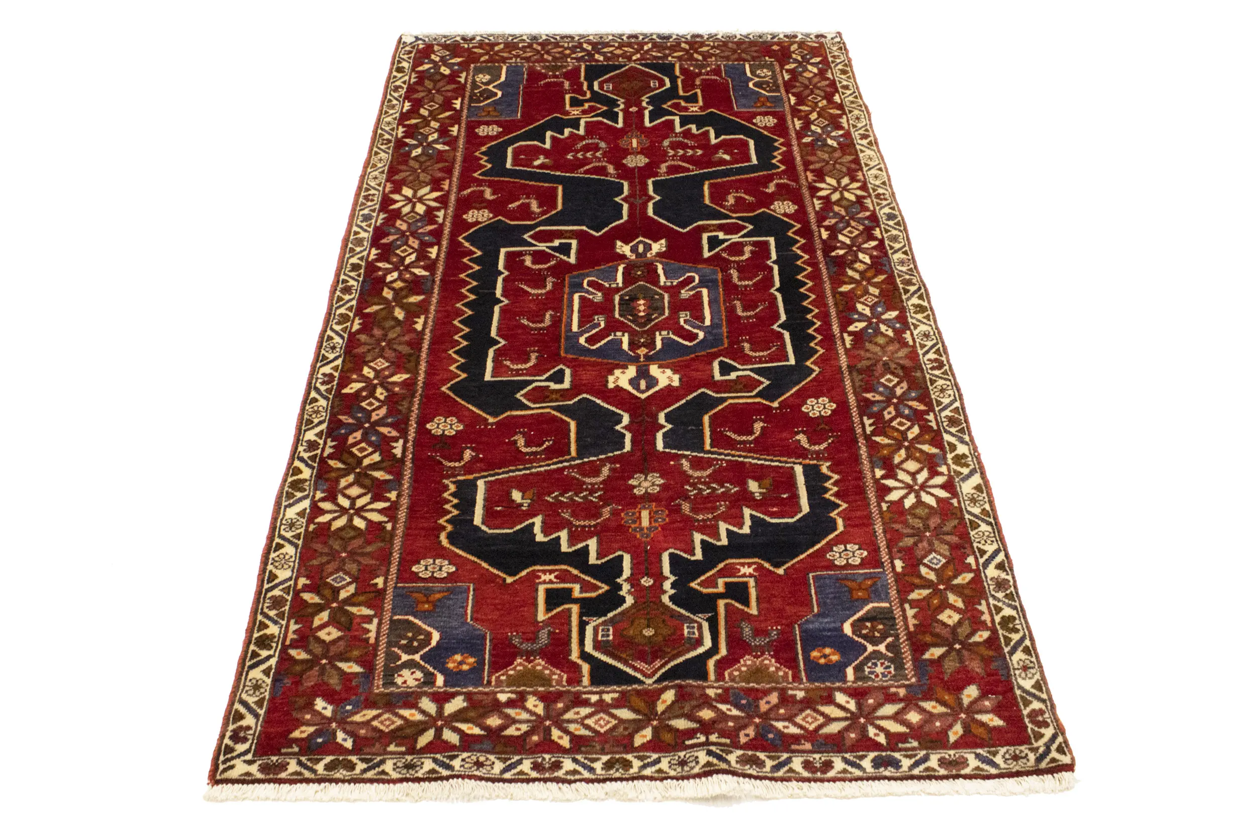 Red Vintage Tribal 3'9X6'4 Nahavand Persian Oriental Rug