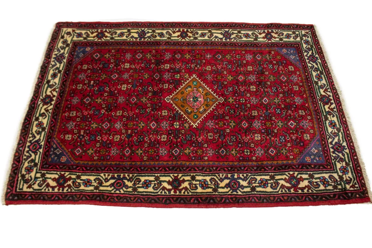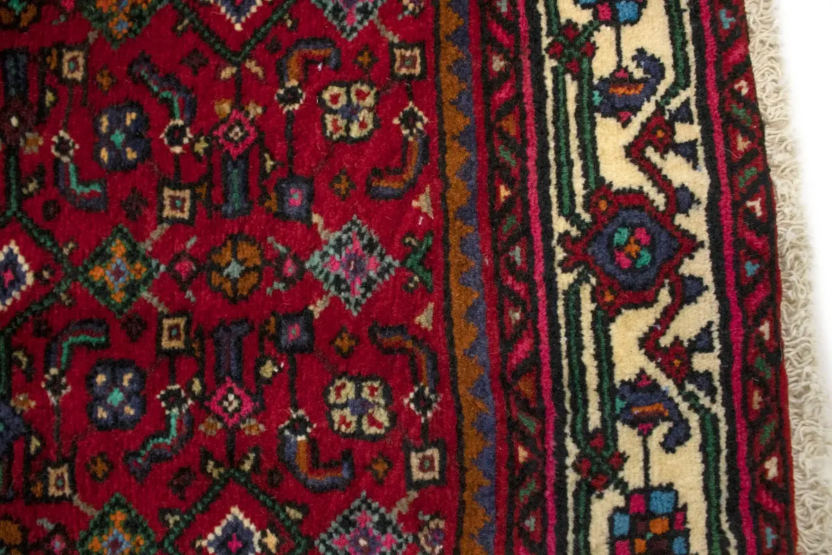 Hand Knotted vintage 3X5 red Persian rug made with vegetable dyes (fine wool pile and cotton foundation), superior knot count, and appealing ancient designs. This Oriental rug never will go out of style and would be among your most valuable treasures.