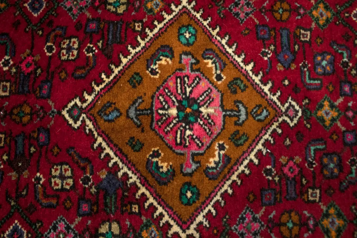 This genuine 3X5 red vintage Persian rug was made by the hands of talented weavers influenced by a variety of gorgeous symmetrical artistic designs, to recreate the aged look of the unique piece with a richness of color and very balanced background field. What set this tribal Oriental area rug from the others are the material and dye used (wool pile and cotton foundation), knot count, antique designs, fantastic grades, and its regional historical connection: it has deep roots, from the story of the people who produced it to the meaning of the symbols and colors displayed across its canvas that have been praised for centuries. This home décor carpet will be completely cozy and inviting that never will go out of style! Also, this Oriental rug would be among your most valuable treasures, it is a great investment that accrues value over time, and it will last a lifetime because was woven with high-quality, all-natural wool; it won’t rip, tear, or shed. Eco-friendly, opulent yet affordable; this Persian rug will give you an extra pop of character to help define your home environment with sophistication and warmth that will capture the eyes and attention of your audience (homeowners, designers, decorators, family and friends). EB-5053