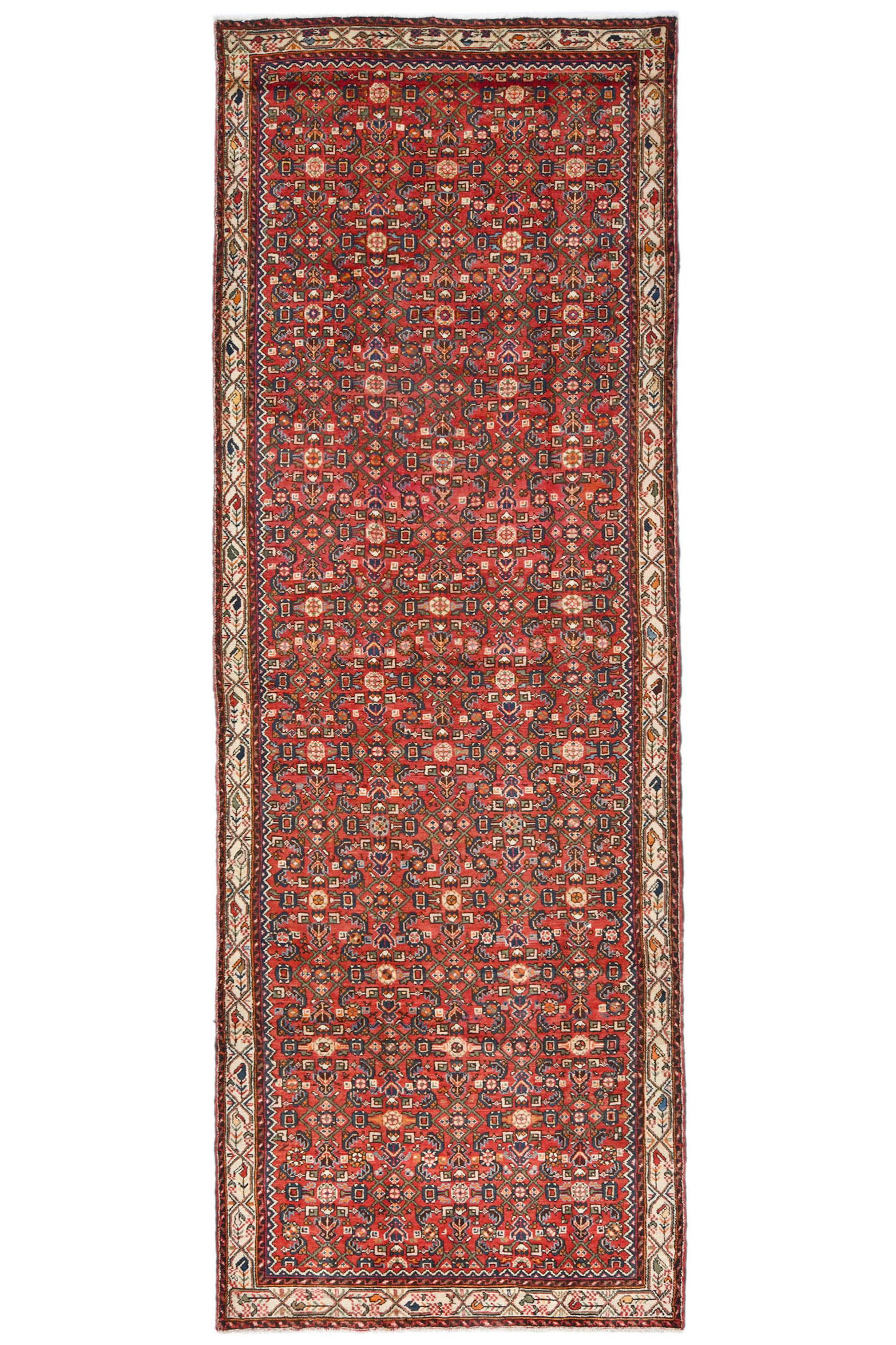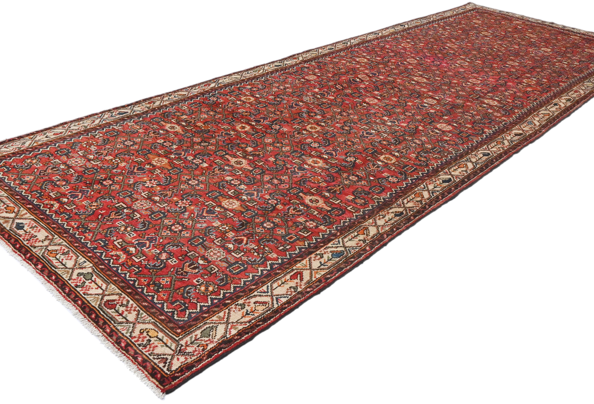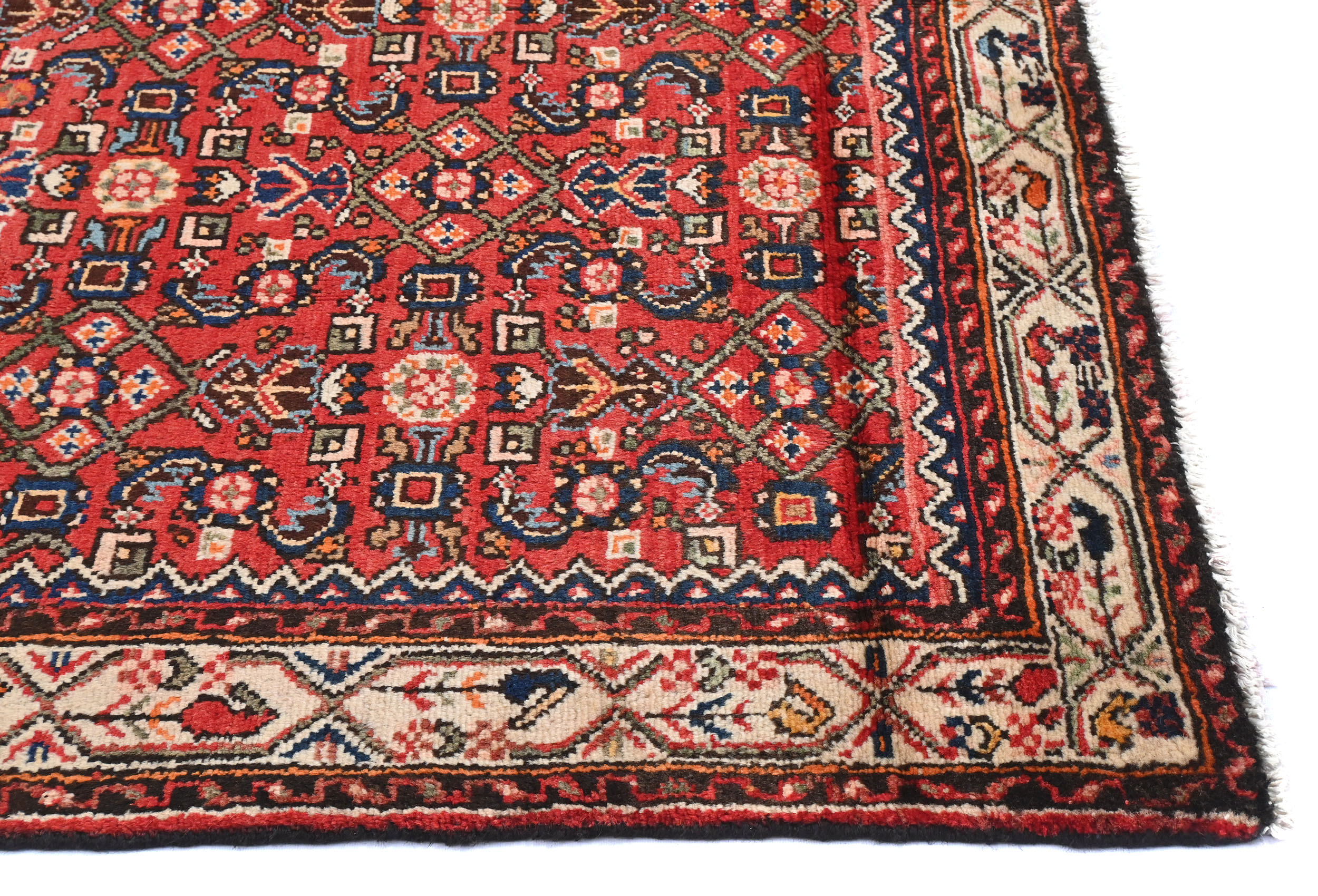 Handmade vintage 5X13 red Persian runner made with vegetable dyes (fine wool pile and cotton foundation), superior knot count, and alluring ancient designs. This Oriental runner never will go out of style and would be among your most valuable treasures.