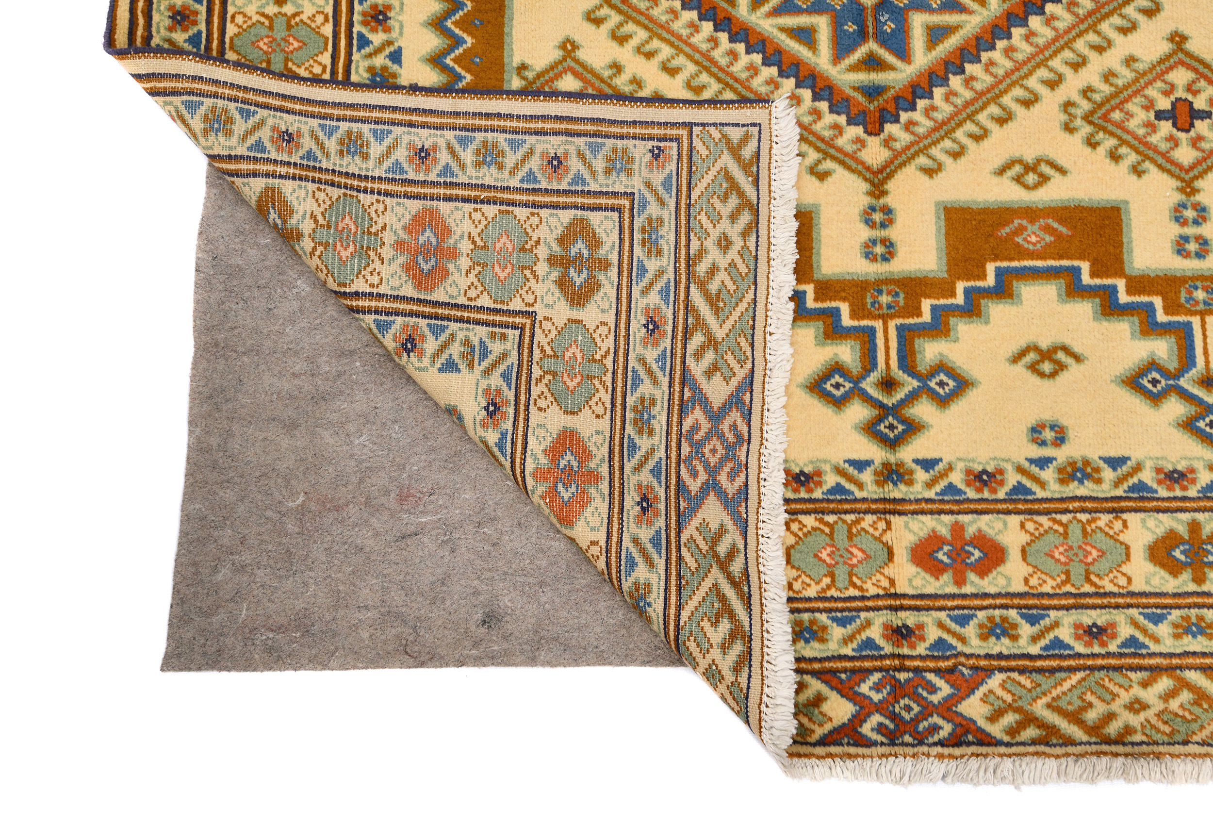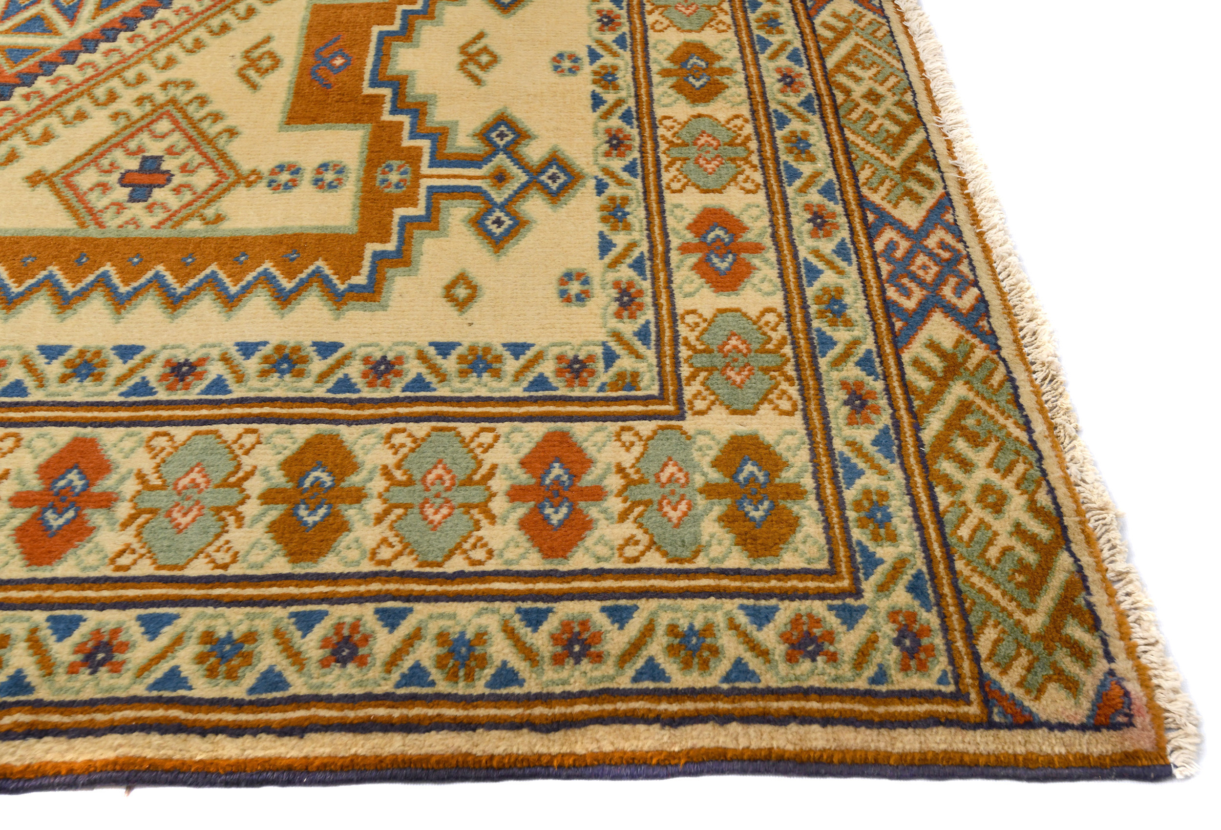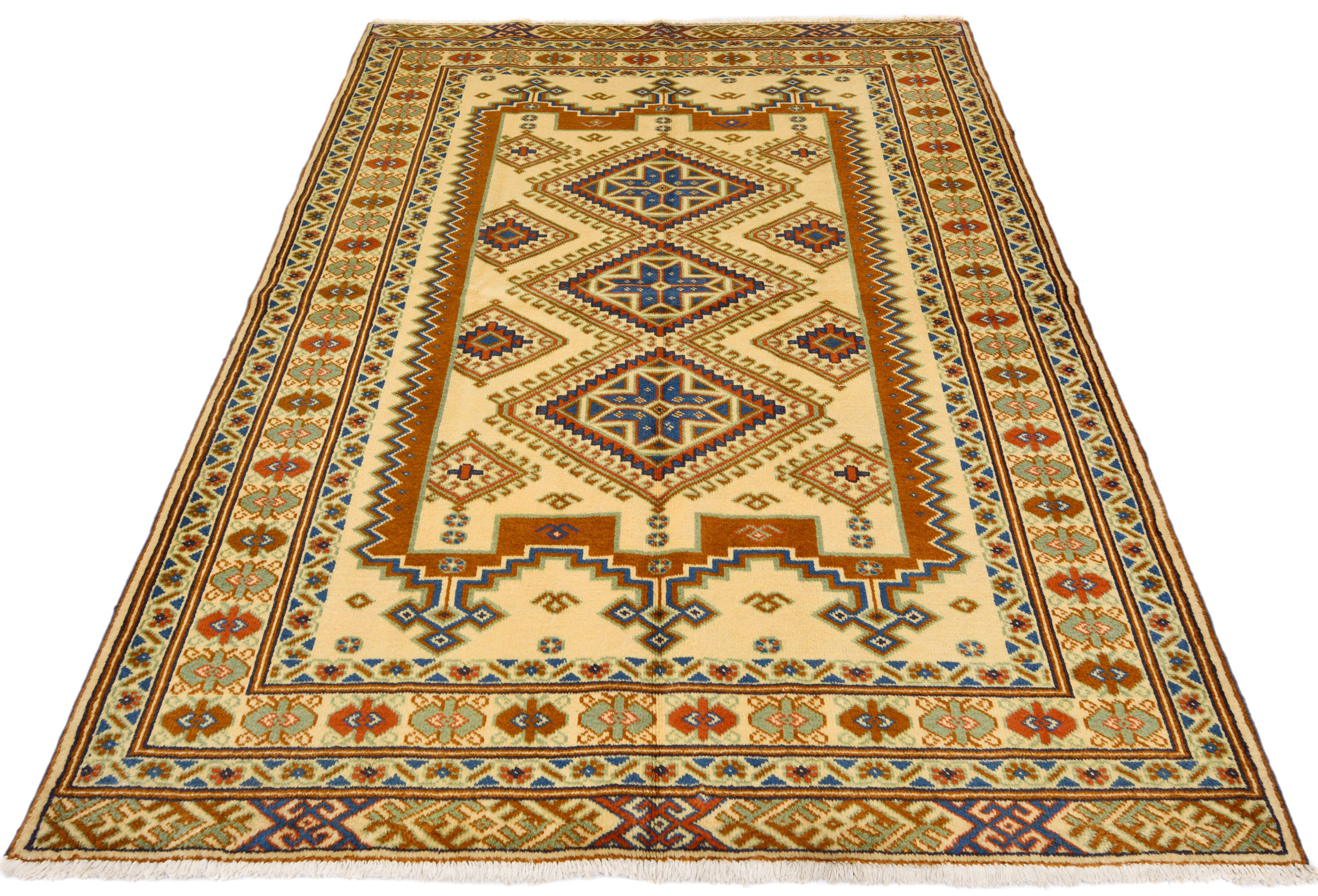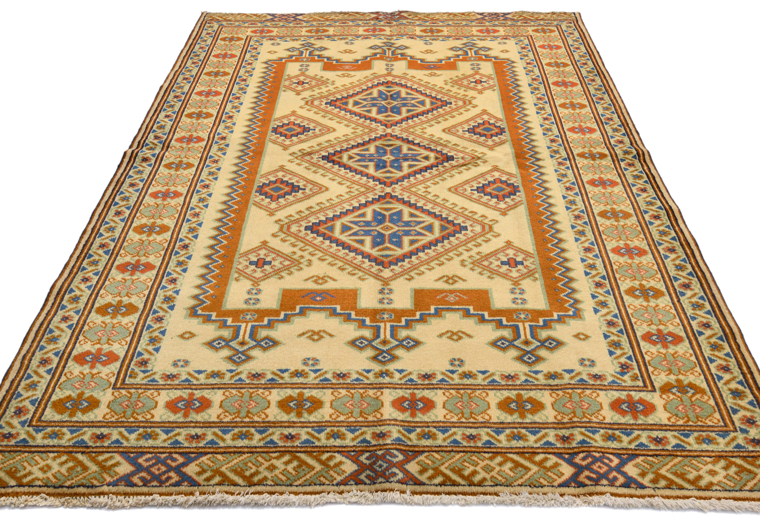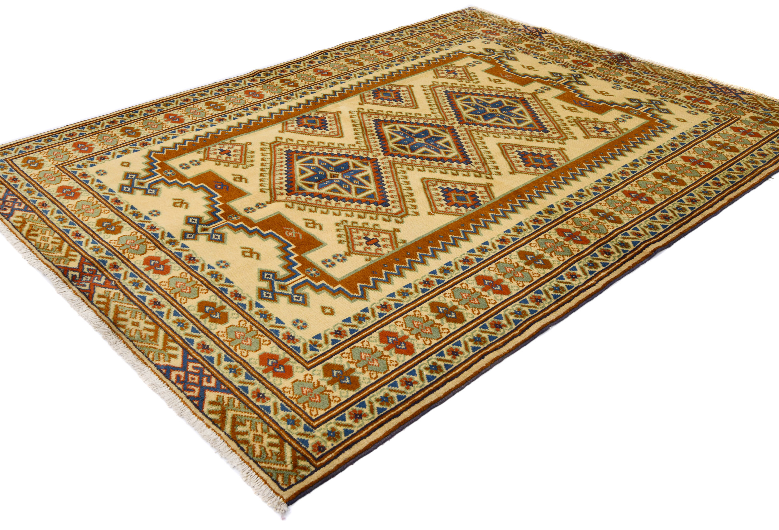 Vintage Yellow Cream Tribal 5X7 Turkoman Persian Rug