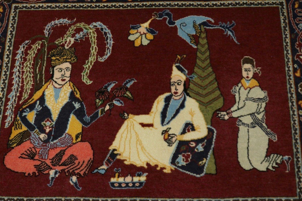 Wine Red Pictorial 2'9X3'3 Kashan Persian Rug